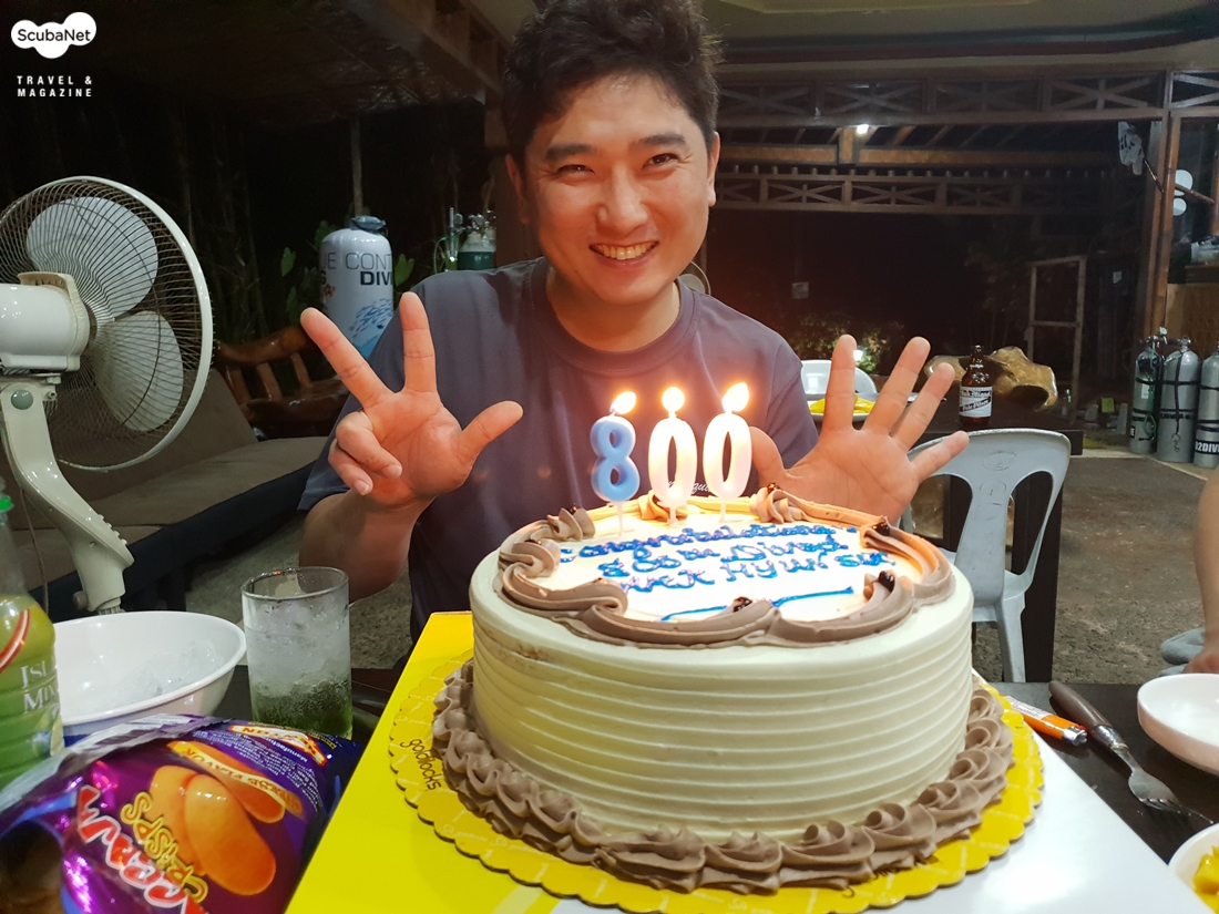 800로그 기념 케익이번 정기 해외 다이빙 투어를 마치며 800회 기념 다이빙을 함께 해준 동료들에게 감사하고, 최상의 서비스와 수중촬영 다이버의 맞춤형 가이드로 더욱 즐거운 투어가 될 수 있었다는 점에 리조트 스태프 일동에게 다시 한 번 감사의 말씀을 드린다.