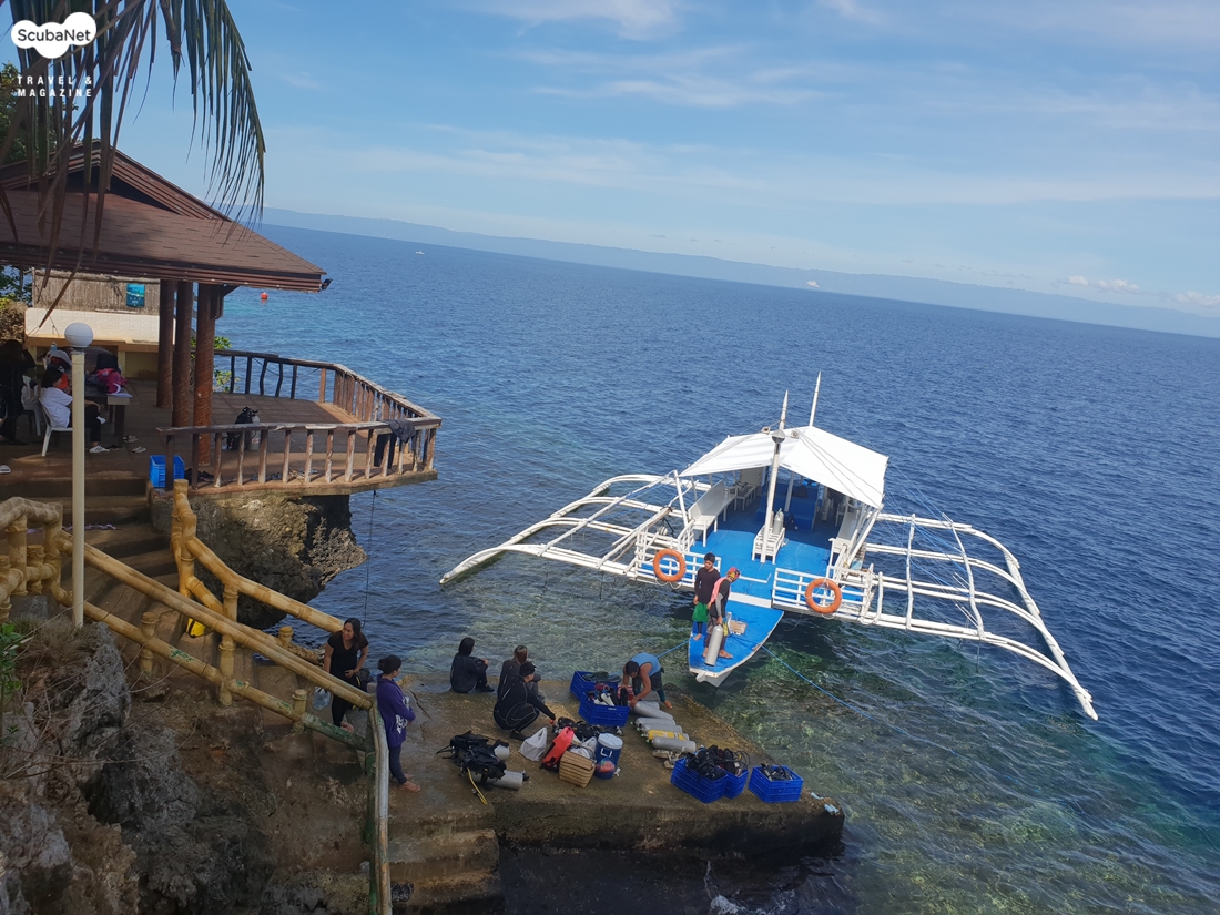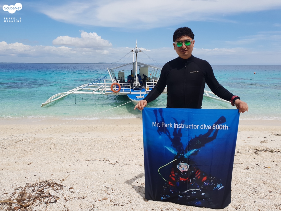 필자의800로그 기념 사진우리가 4박 5일간 지낸 ‘Go2dive’는 보홀 신공항에서 10분, 알로나 비치에서 15분 거리에 위치하고 있어 접근성이 좋다. 또한 리조트 바로 앞 Napaling 포인트는 정어리 떼 출몰이 잦아 다른 다이빙숍과 일반 관광객들도 즐겨 찾는 핫플레이스이다. 현재는 증가하는 고객들의 편의를 위해 객실 건물 좌측 확장 신축 공사를 하고 있지만, 리조트 스태프들의 친절한 서비스 덕분에 투숙하는 5일 동안 생활하는데 전혀 불편함이 없었다. 리조트 앞에서 방카를 타는 시스템은 다른 리조트와 조금 차이가 있는데, 기상 여건이 좋고 만조일 때는 리조트 앞까지 방카가 올 수 있으나, 파도가 있거나 간조로 물이 빠지게 되면 근처 해변까지 차로 이동한 뒤 방카를 이용한다. 우리가 다이빙한 3일 동안은 날씨가 좋아서 오전에는 리조트 앞에서 방카를 타고 포인트로 이동했고, 오후에는 이틀 정도 근처 해변에 정박해서 차량으로 리조트로 복귀하고 마지막날 오후에는 리조트 앞에 방카가 정박할 수 있어서 모든 방식을 경험할 수 있었다.
