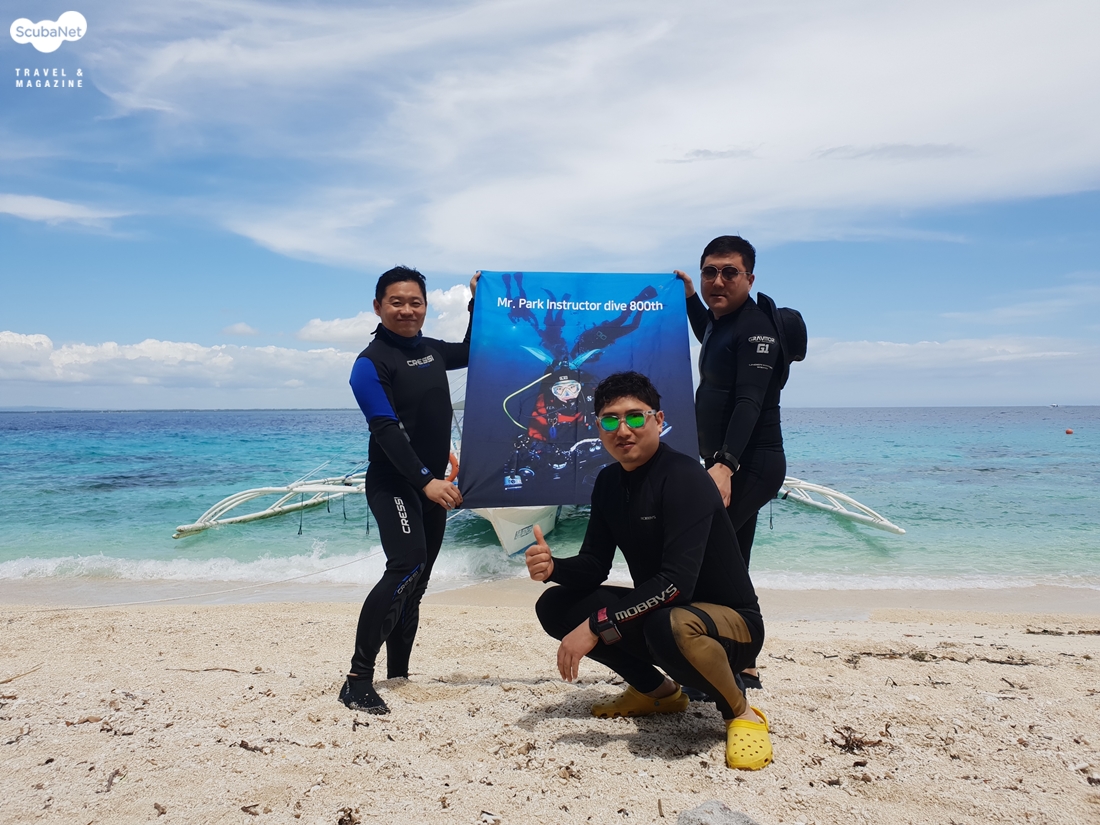 발리카삭 섬에서 800회 로그를 축하하며우리는 첫날 오전 8시에 인천국제공항을 출발, 마닐라를 경유하여 오후 4시경 ‘Go2dive’에 도착하였다. 리조트 사장님의 리조트 생활 안내 및 스태프들과 상견례를 한 뒤 다음날부터 시작되는 즐거운 다이빙을 위해 설레는 마음을 안고 첫날은 충분한 휴식을 취했다.