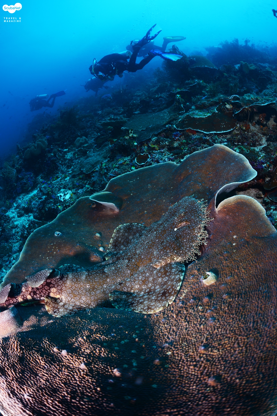 접시산호 위에 은폐하고 있는 수염상어