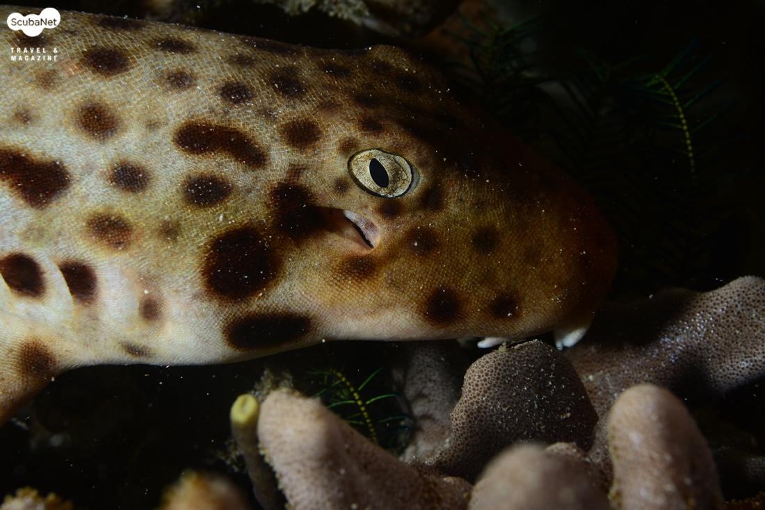 말레이시아 랑카얀의 야간 다이빙에서 촬영한 흑점얼룩상어