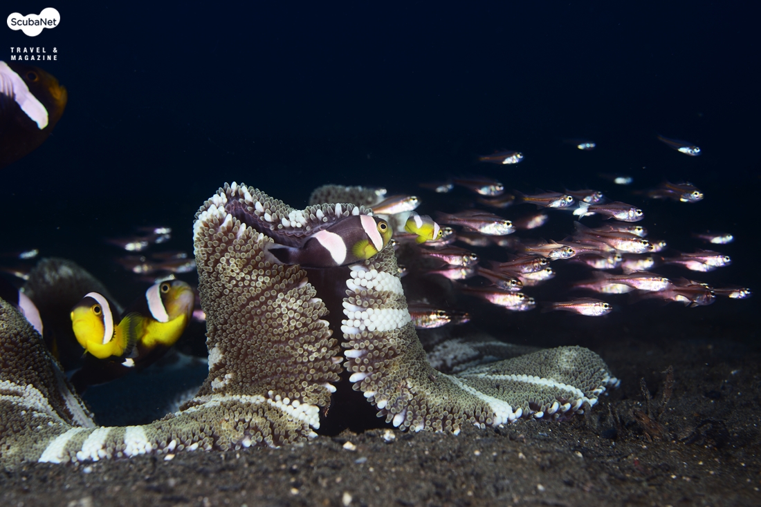 마크로 포인트에서 만났던 새들백아네모네피쉬와 카디널피쉬 무리