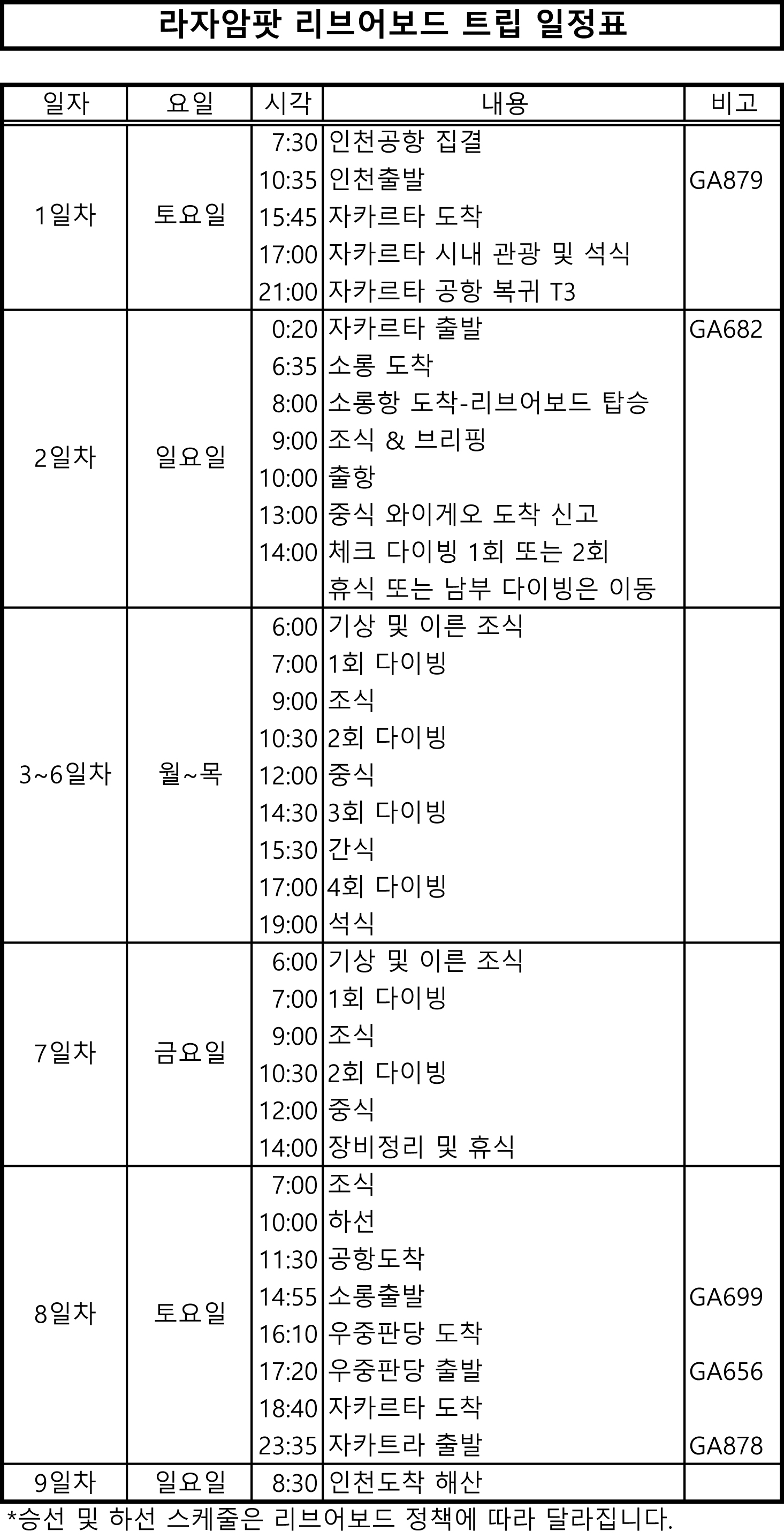 라자암팟 리브어보드 일정표(별표)