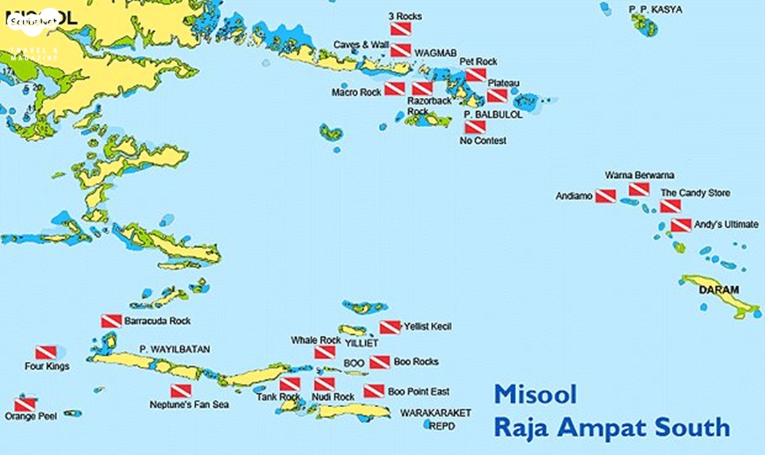 라자암팟 Raja Ampat은 인도네시아어로 ‘4명의 왕’이란 뜻으로 인도네시아의 가장 동쪽에 위치한 뉴기니 섬과 할마에라 섬 사이에 위치한 미술 Misool, 살라와티 Salawati, 바탄타 Batanta, 와이게오 Waigeo 등 4개의 섬으로 구성되어 있다. 넓은 지역에 흩어져 있기 때문에 주로 리브어보드 보트를 이용하여 다이빙을 진행하며, 경우에 따라 몇몇 섬에 자리잡은 리조트에 머물며 다이빙을 하기도 한다. 리브어보드와 리조트들 모두 공항이 있는 뉴기니 섬 서쪽의 소롱 Sorong을 기점과 종점으로 삼아 움직인다. 따라서 라자암팟을 가기 위해서는 소롱까지 가야한다.