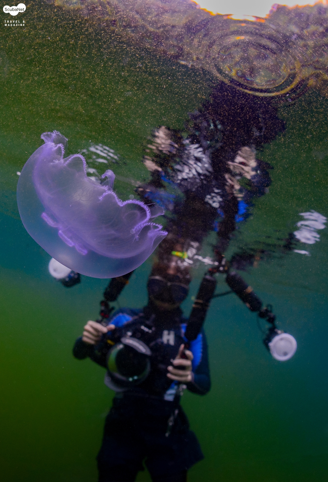 해파리 호수에서 만난 보라색 해파리