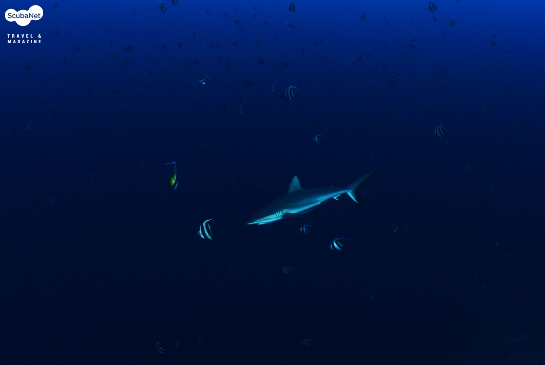 외해 쪽으로 지나가던 그레이 리프상어