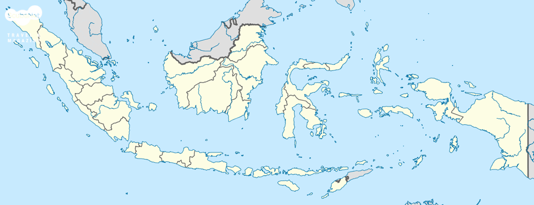 인도네시아의 지도. 라자암팟은 맨 오른쪽에 있는 새 머리 모양의 뉴기니섬 끝에 위치해 있다.