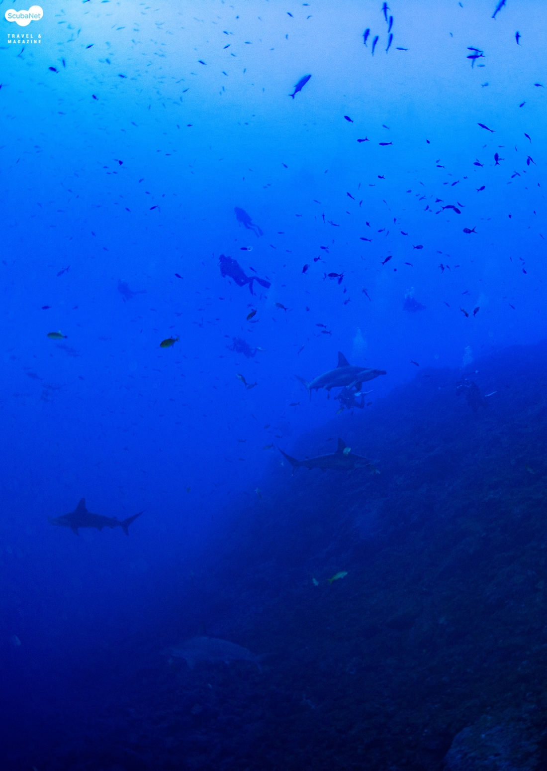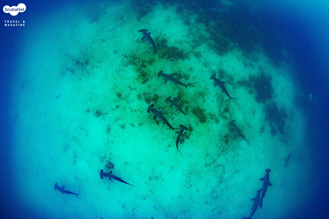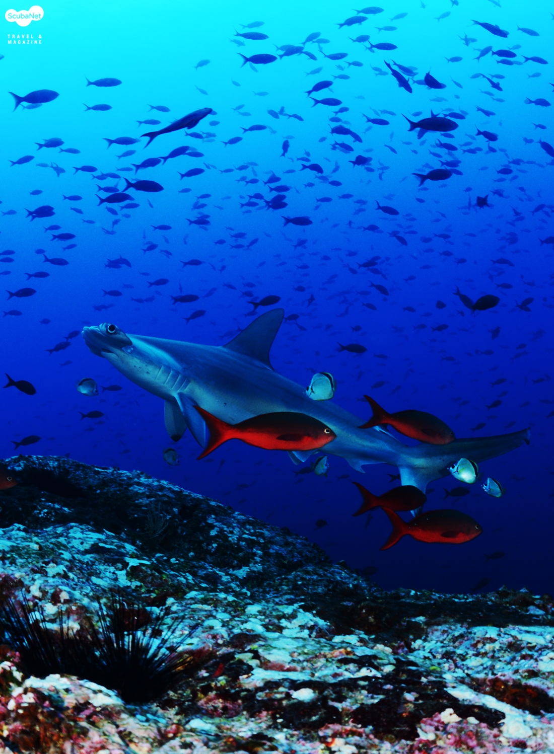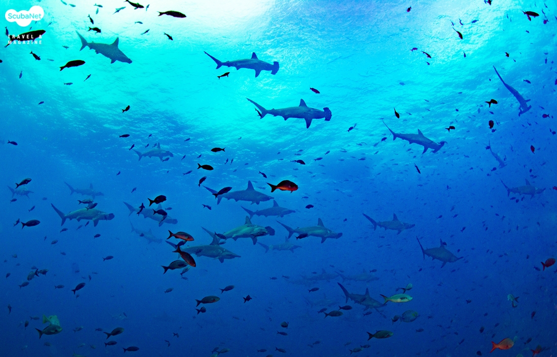 홍살귀상어. 머리 앞 쪽에 가리비 모양의 홈이 파여 있는 모습이 특징적이다. 장소/홍해그 외 다이버들이 귀상어를 보러 가는 곳으로는 일본 요나구니 섬, 필리핀 슬루씨, 말레이시아 시파단과 라양라양, 인도네시아 반다씨, 몰디브, 멕시코의 라파즈와 소코로, 홍해 등이 있다. 필자는 홍해와 반다씨, 소코로 등에서 십여 마리의 귀상어 무리를 만난 적은 있지만 갈라파고스와 코코스 섬만큼 무리가 크지도 않았고, 만날 수 있는 확률도 복불복 수준이었다. 아마도 갈라파고스와 코코스 섬을 제외하면 그 어디든 귀상어의 큰 무리를 확실히 만날 수 있다고 장담하지 못할 것이다. 따라서 귀상어 무리를 꼭 보고 싶은 다이버라면 확률이 낮은 곳들을 여기저기 찾는 것보다는 코코스나 갈라파고스 섬을 찾는 것이 나을 것이다.