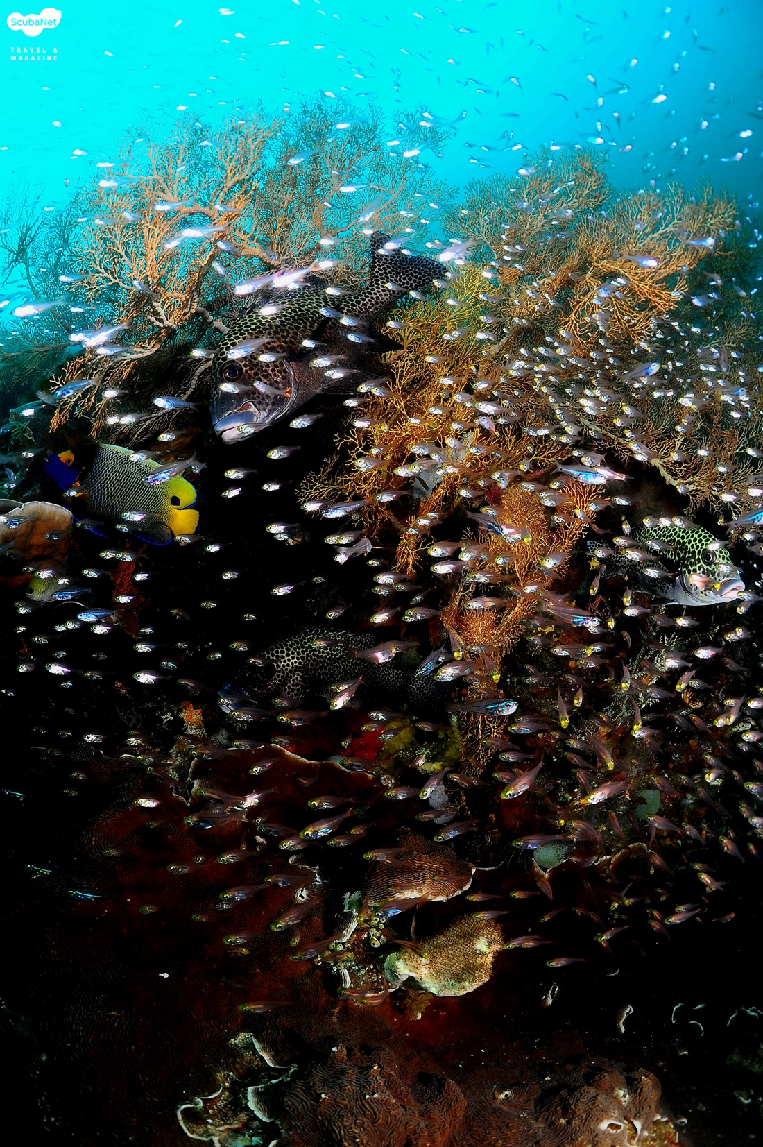 부채산호와 글라스피쉬로 위장하고 있는 스위트립스들