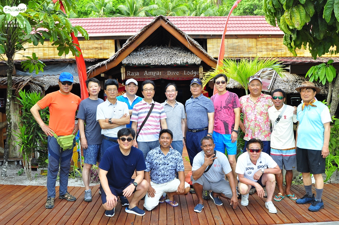이번 라자암팟 다이빙 여행도 떠나기 6개월 전에 스쿠버넷의 최성순 대표가 작년 팔라우 락아일랜드 어그레서 풀차트에 이어서 라자암팟 다이빙 여행을 추천해 주었다. 대신 우리 회원들의 연령층을 고려하여 리브어보드 대신에 조용하고 깨끗한 라자암팟 다이브롯지라는 리조트를 권해 주었다. 회원들은 고민을 하다가 결정했는데 참가하기로 한 회원이 12분이었다. 작년 팔라우 리브어보드는 이틀 만에 18분이 풀로 신청한 것에 비하여 저조했지만 함께 떠나기로 했다. 아직 체력이 되시는 분들은 그래도 라자암팟은 리브어보드 다이빙을 해야 한다는 생각과 겨울이 아닌 시즌에 가는 것은 별로라고 생각하시기 때문인 것 같았다.