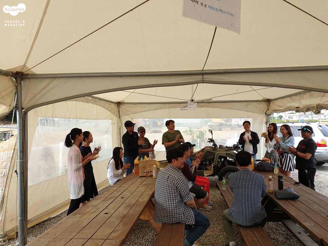 수작코리아 박윤철 대표와 함께이번 참가인원은 총 14명으로 A조 4명, B조 4명, C조 3명, D조 3명 이렇게 그룹별로 촬영을 진행하였다.모델이 수중에서 적응하는 시간이 필요하기 때문에 자연스러운 사진을 위해서는 촬영의 순번을 정하는 일이 매우 중요지만 이날 오전부터 시작한 빡빡한 일정으로 개인적으로는 빨리 찍고 쉬고 싶어 A조 2번째로 촬영 순번을 정하였다.