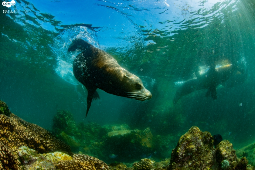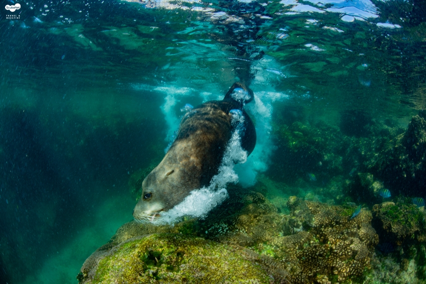 다이버의 주먹을 물어보는 바다사자바다사자들은 한두 마리의 우두머리 수컷들이 20~30마리의 암컷들을 거느리는 콜로니를 구성하는데 로스 이슬로테스에도 여러 개의 콜로니들이 형성되어 있다. 짝짓기 시즌이라 경쟁 수컷들의 침입을 경계하는 우두머리 수컷들을 자극하지 않으면서도 바다사자들의 콜로니 근처로 가서 장난기 많은 1년생 바다사자들은 만나는 것이 다이빙의 목적이었다. 200kg가까이 되는 큰 덩치에 앞머리가 툭 튀어나온 수컷 바다사자들은 다이버들이 다가가면 자신의 영역을 순회하며 컹컹 소리를 내는데 더 이상 가까이 오지 말라는 뜻이었다. 이럴 때는 바닥에 바짝 엎드려 있다가 천천히 접근해야 한다. 수컷이 경쟁자가 아니라는 것을 인식할 때까지 기다리는 것이다. 가끔 수컷은 지나가면서 공기방울을 내뿜거나 이빨을 보이기도 하는데 이때는 뒤로 물러나서 다른 콜로니를 찾아야 한다.