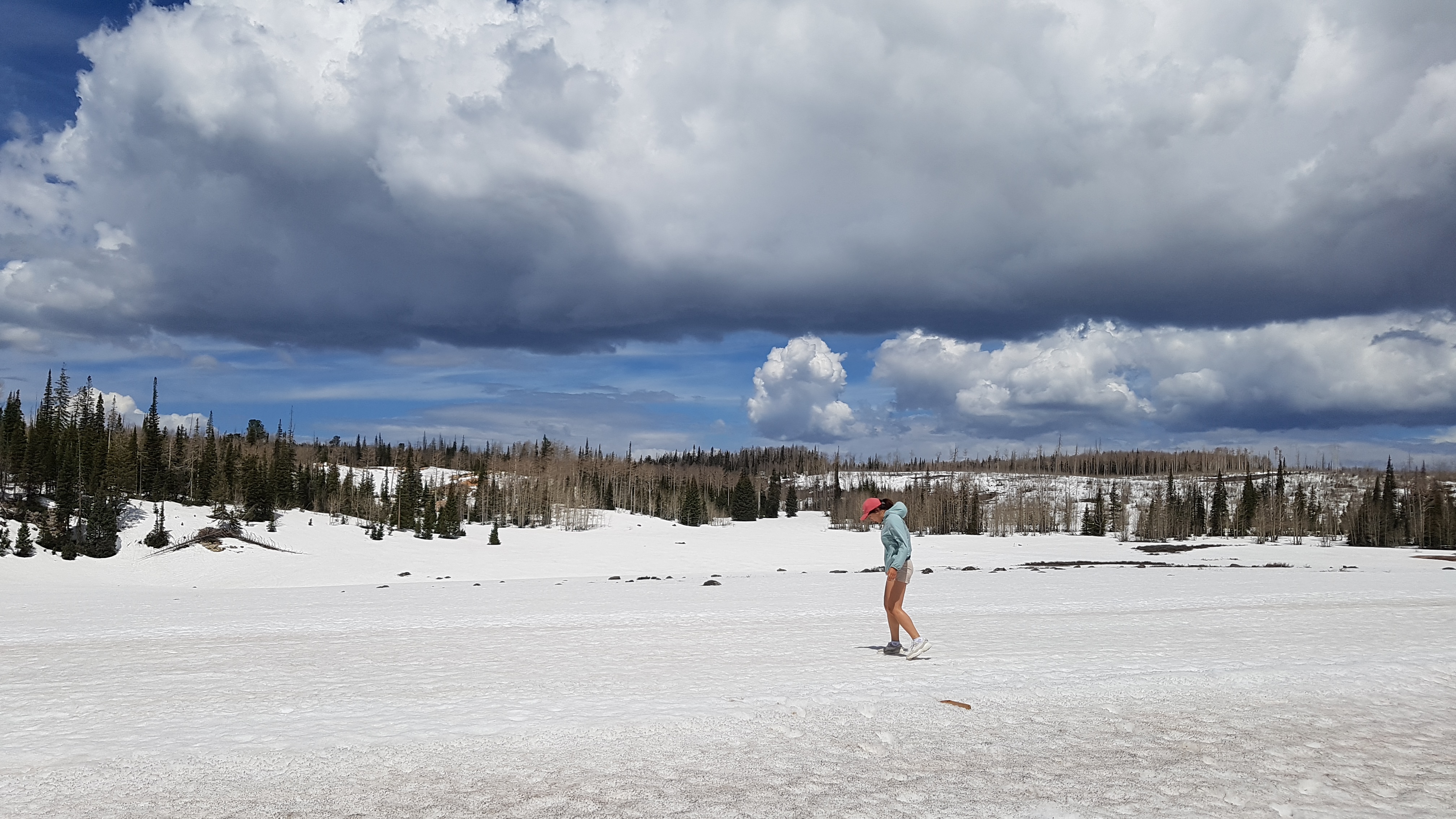 아직도 눈이 쌓여 있는 시더 캐년 산길