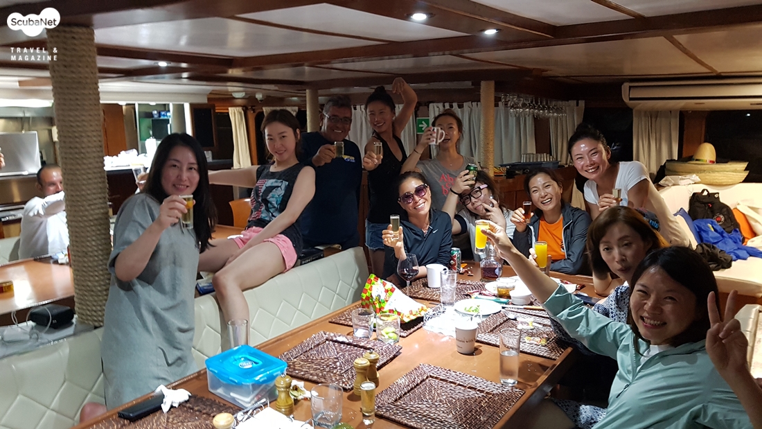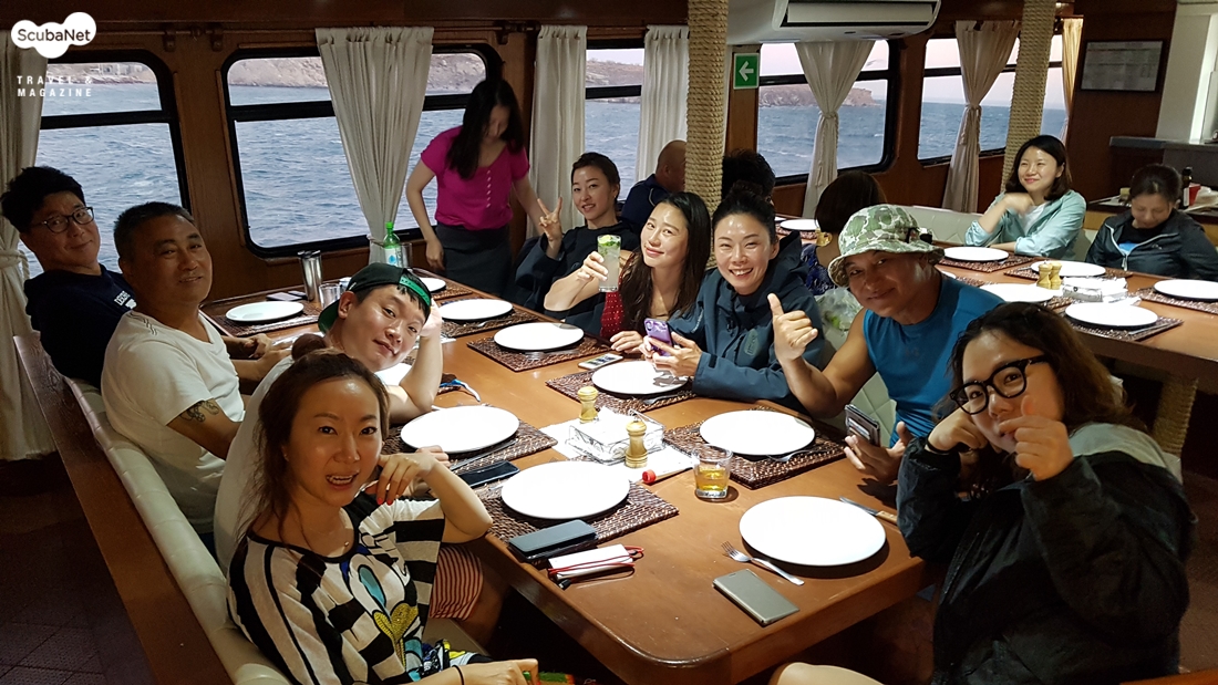 타코 파티를 즐기는 다이버들로스 이슬로테스 바다사자 다이빙리브어보드 발렌티나 호에 승선하여 저녁 식사를 하고 브리핑을 마친 다음에 배는 출항을 하였다. 라파즈 만을 벗어나 Isla del Espiritu Santo, Isla Partida를 지나 다음 날 아침에 바다사자 보호구역인 로스 이슬로테스 Los Islotes에 도착하였다. 바다사자들의 짝짓기 시즌인 6월 1일부터 8월 31일까지 석달간은 다이빙을 못하기 때문에 5월 30일과 31일에는 이곳에서 바다사자 다이빙을 하면서 근처에서 모불라 레이를 찾아보기로 했던 것이다.