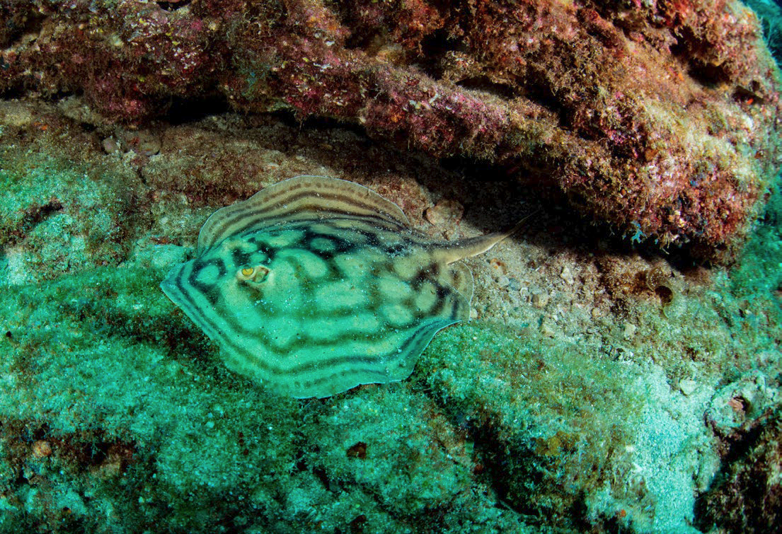 트레발리를 구경하다 만난 골든카우노즈레이 무리엘바호 리프에서는 엄청난 크기의 그루퍼와 수많은 그루퍼들, 옐로우 스내퍼 무리와 파나믹 포크피쉬 Panamic Porkfish 무리 등 수많은 물고기들을 관찰할 수 있었다. 또한 보기 힘든 기타피쉬와 가오리들도 볼 수 있었는데 밴디드 기타피쉬 Banded guitarfish와 스팅레이였다.