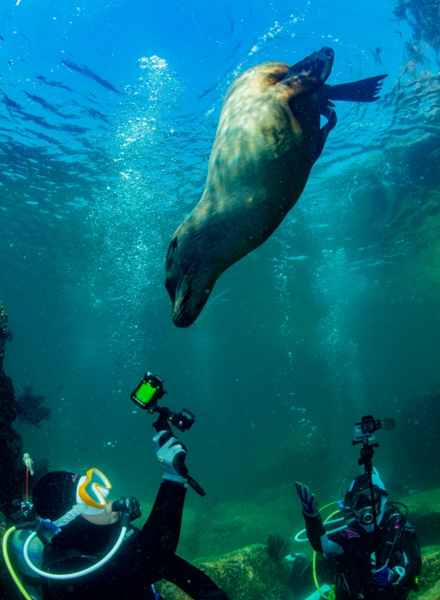 콜로니 바로 앞에 모여 앉아서 임신한 암컷 바다사자들이 수면에서 졸고 있는 것도 구경하였고, 페트롤하는 수컷에 긴장하기도 하였다. 한참을 구경하다가 다른 콜로니를 찾아가니 마침 다른 팀에서 구경하다가 자리를 비켜주었다. 바다사자 한마리가 매우 활동적이어서 사진과 동영상을 촬영하는데 알고보니 젊은 수컷이었다. 소리를 지르기도 하고, 버블을 내뿜기도 하고 갑자가 카메라 앞으로 확 다가오기도 하였다. 젊은 수컷의 위협적인 행동에 자리를 뜨긴 했지만 덕분에 멋진 사진도 건질 수 있었다.
