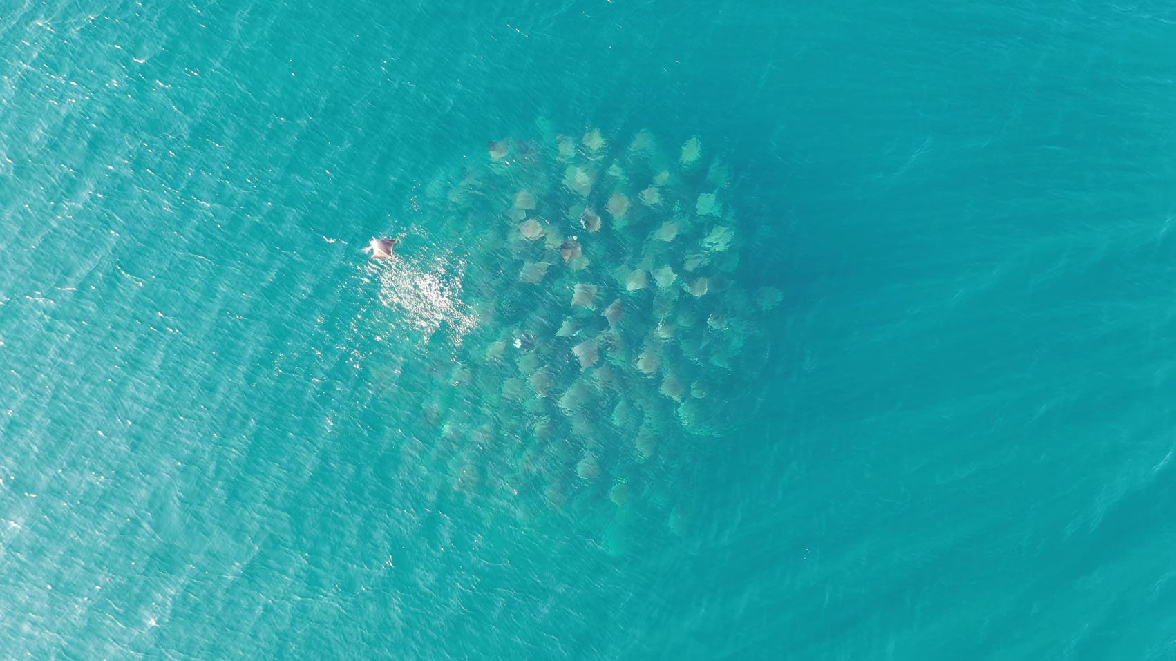 블런트헤드 트리거피쉬 첫 모불라 스노클링Isla del Espiritu Santo의 동쪽을 수색하다가 모불라레이의 점핑을 관찰하였다. 드론을 날려서 모불라레이 무리를 확인할 수 있었는데 규모가 적당했고, 점핑 행동도 활발하였다. 바로 배를 멈추고 스노클링 준비를 하여 출발하였다. 드론 촬영을 하느라 함께 스노클링을 하지 못했지만 일부는 아주 가까이서 모불라레이와 스노클링을 할 수 있었다고 한다.