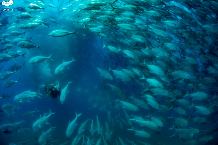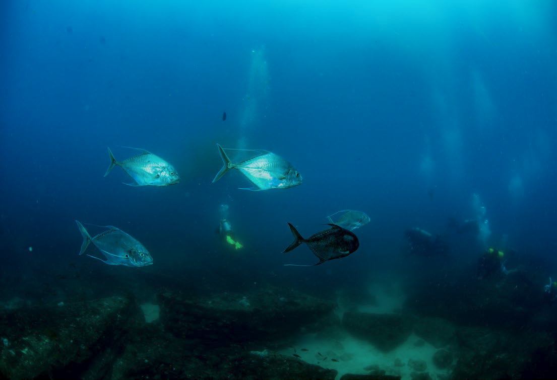무리를 이루어 천천히 이동하는 모불라레이들 카보풀모 국립공원 다이빙카보풀모 국립공원 Cabo Pulmo National Park은 인근에서 가장 핫한 다이빙 사이트이다. 무리의 수를 가늠할 수 없을 정도로 많은 빅아이 트레발리 Bigeye Trevally 무리와 난파선 포인트의 황소상어 Bull shark 그리고 메인 리프인 엘 바호 El Bajo 리프에서 다이빙을 할 수 있었다. 원래 2회 다이빙이 계획되어 있었지만 다이빙에 아쉬운 다이버들을 위해 3회 다이빙을 할 수 있도록 해주었다.