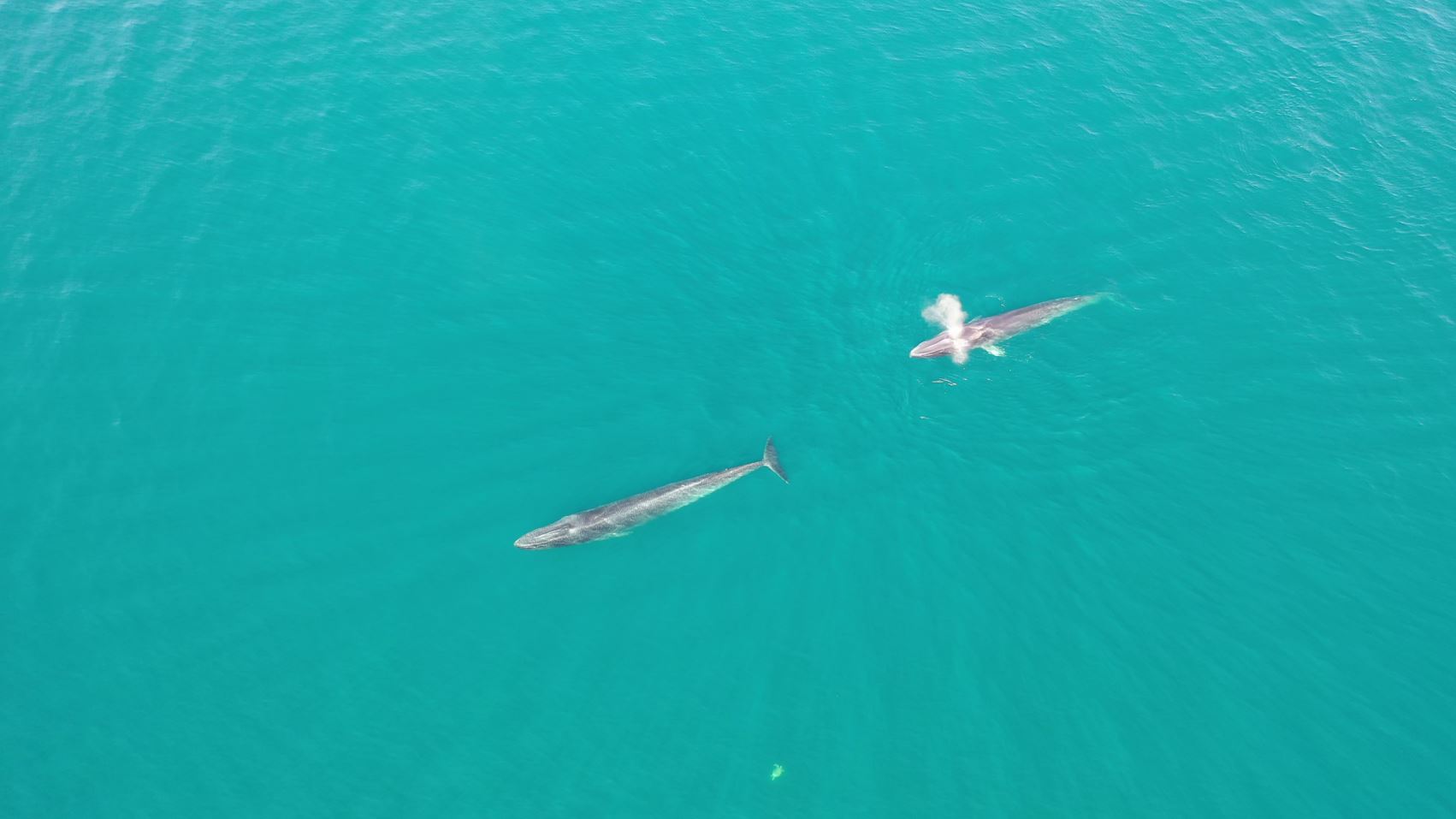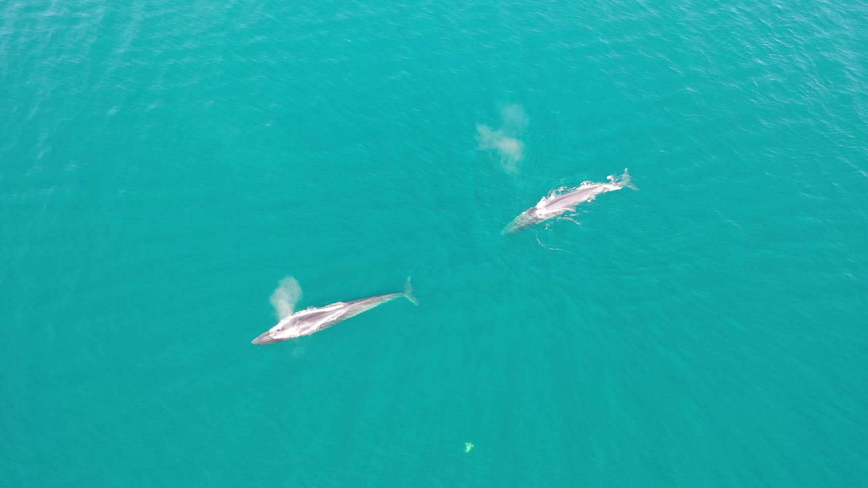 고래와의 만남오후에 Isla Partida와 Isla del Espiritu Santo의 서쪽에서 모불라레이를 찾아다니다가 고래를 만났다. 근처에 큰고래(긴수염고래 Fin whale)과 범고래(Orca) 목격되었다는 이야기는 들었지만 직접 고래를 보게 될 줄은 몰랐다. 드론을 날려서 확인하니 두 마리의 고래가 함께 유영하는 모습이 화면에 들어왔다. 마침 근처를 지나는 바다거북 한마리가 함께 화면에 잡혀서 고래의 크기가 얼마나 큰지를 짐작할 수 있게 해주었다. 최소 20m는 넘을 정도의 크기였다. 흰수염고래(대왕고래 Blue whale)인줄 알았지만 나중에 확인하니 큰고래였다. 이들은 배 근처 가까이 지나갔는데 드론 배터리를 교체하느라 좀 더 오래 촬영하지 못한 것이 아쉬웠다.