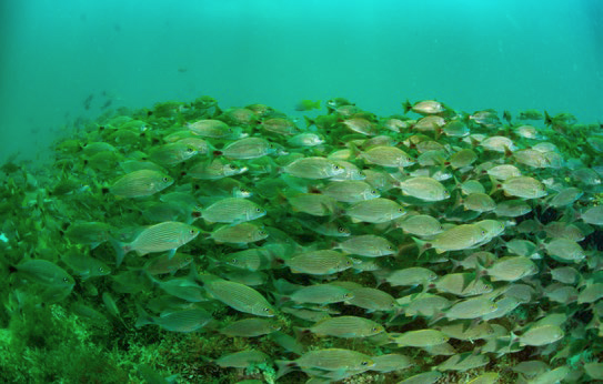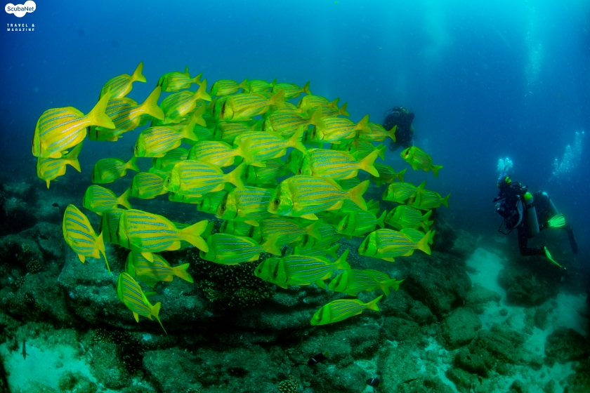 엄청난 무리를 이룬 스팟테일그룬트들 산 라파엘리토 라이트 하우스모불라 레이를 찾아 다니다가 오후에는 액티비티가 관찰된다는 산라파엘리토 라이트하우스San Rafaelito Light House 근처를 수색하였다. 가끔씩 모불라레이의 점핑이 관찰되기도 했다. 하지만 바다사자를 좋아하는 다이버들을 위해 라이트하우스에서도 1회 다이빙을 진행하였다. 이곳은 보호구역은 아니지만 작은 섬인데도 바다사자 콜로니가 여럿 있었다. 얕은 수심을 따라 이동하며 바다사자 중심으로 다이빙을 진행하였다.
