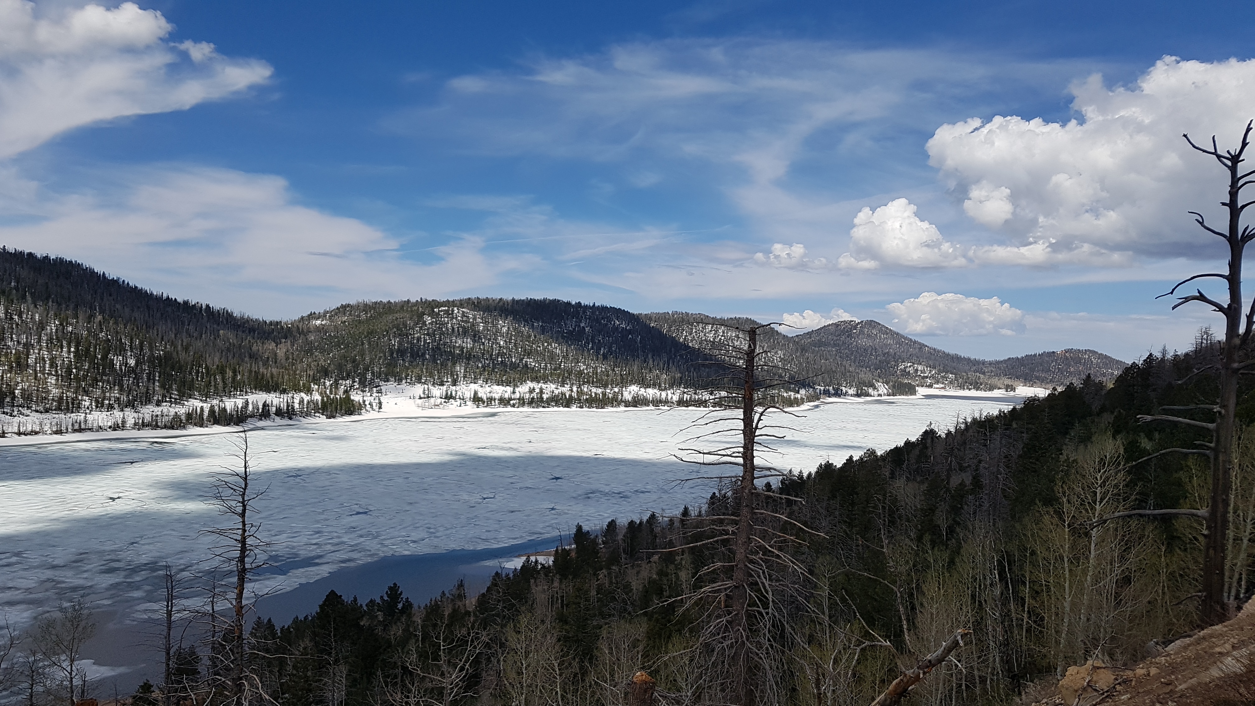 얼음과 눈으로 뒤덮힌 나바호 호수
