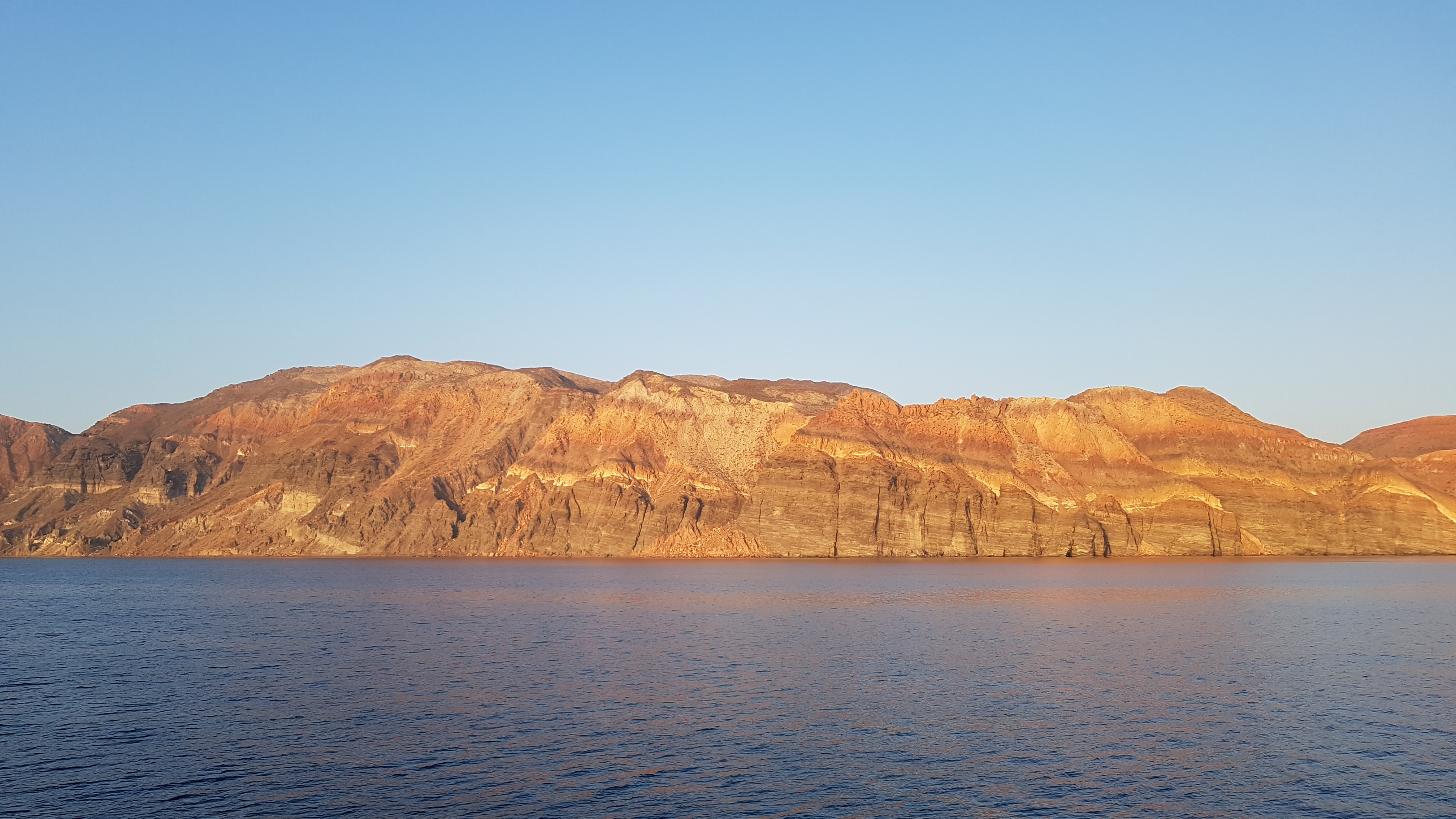 아침 해를 받아 붉게 물든 이슬라 델 에스피리투 산토 섬