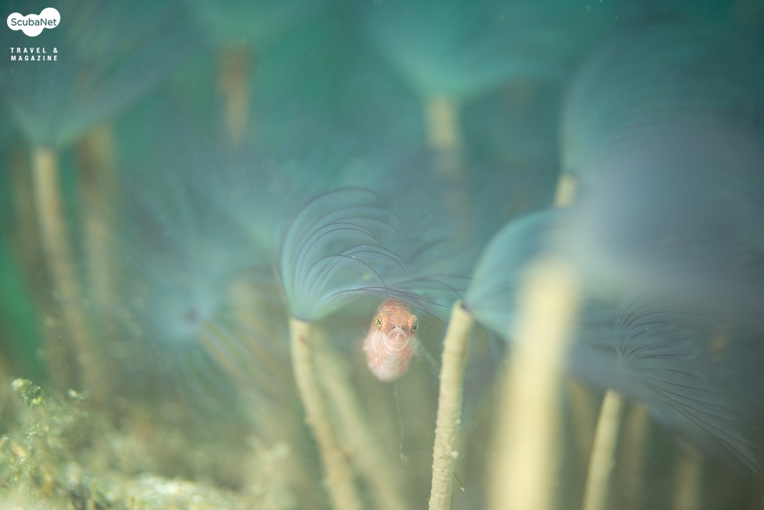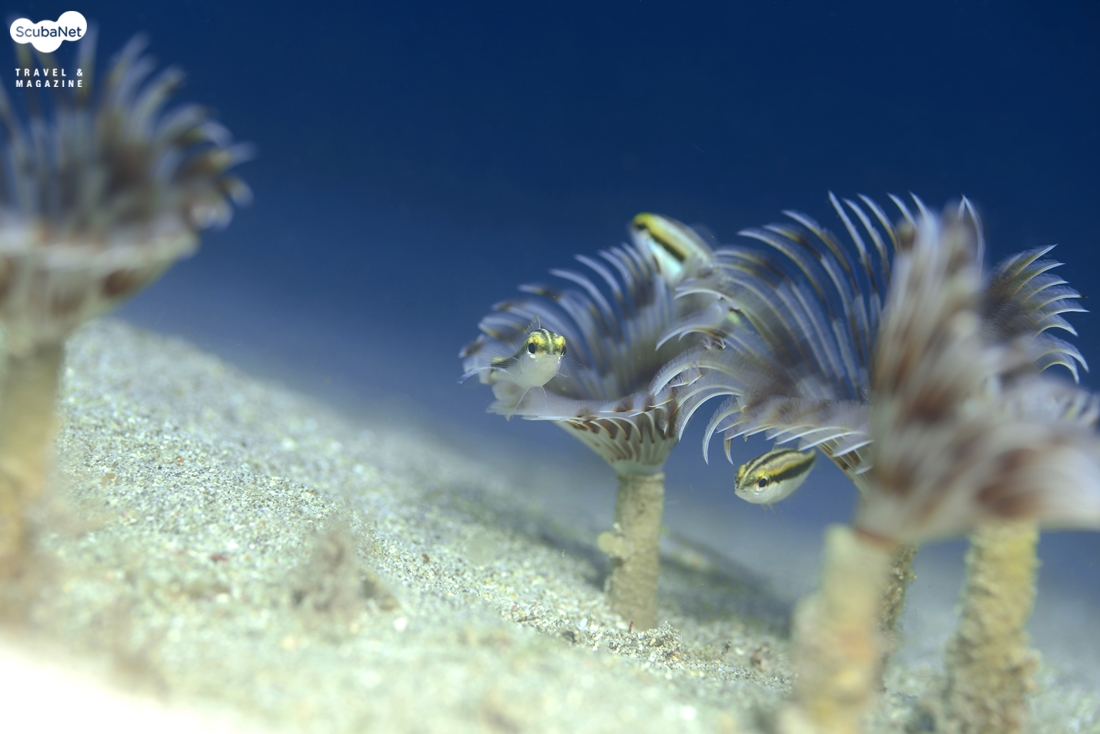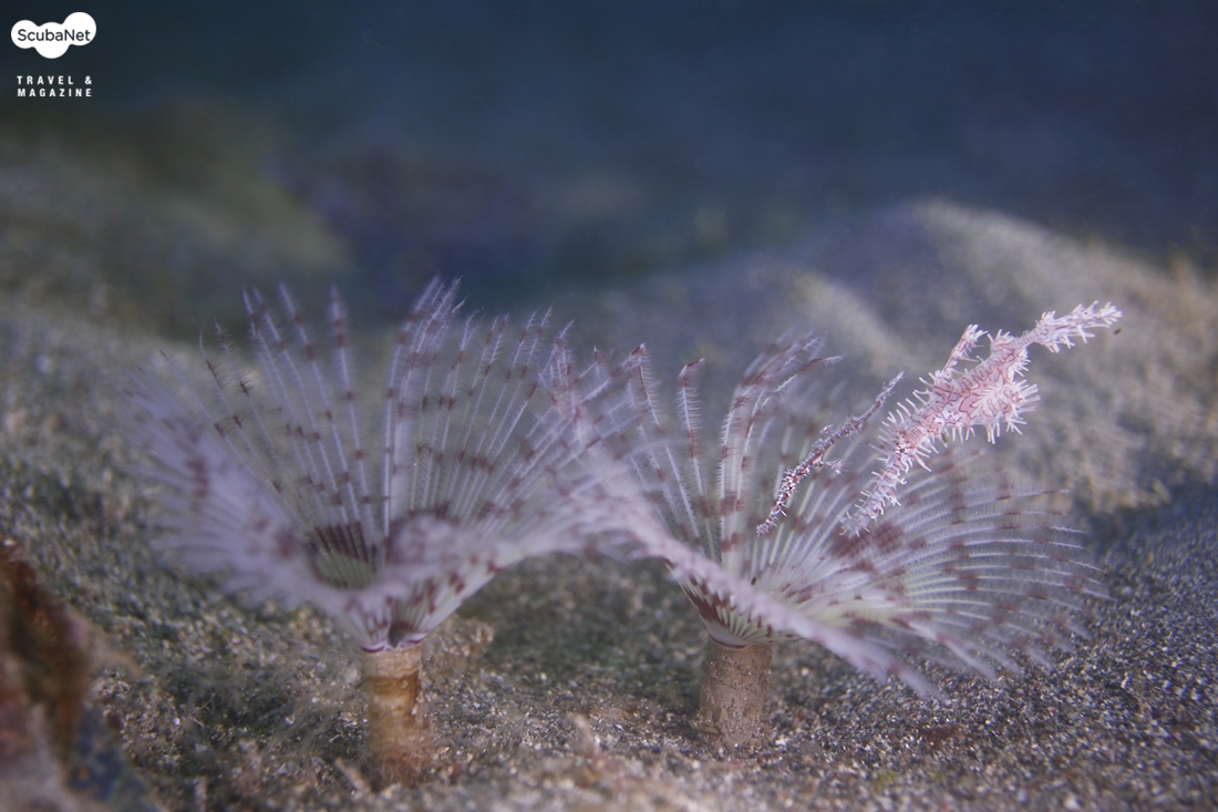 50mm 렌즈로 고스트 파이프피쉬와 튜브웜을 촬영하였다.