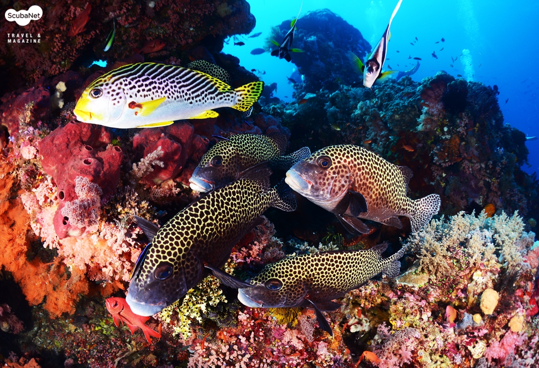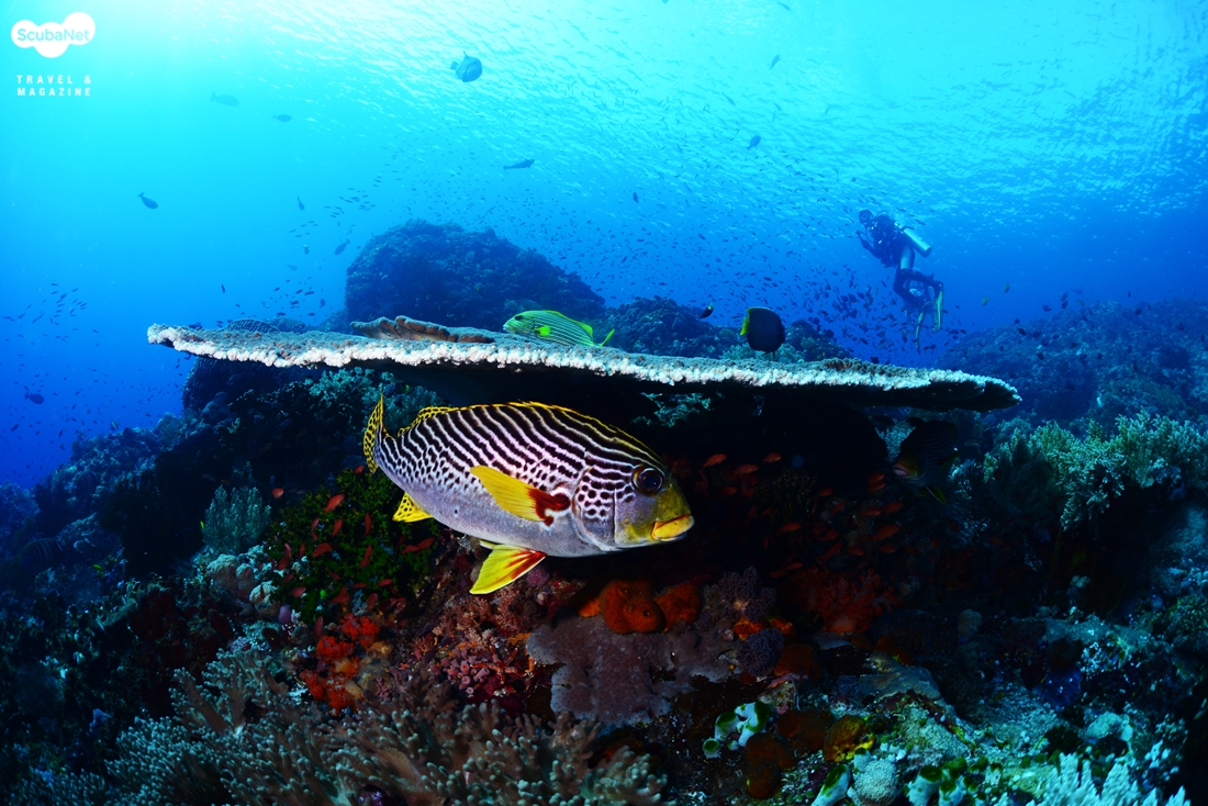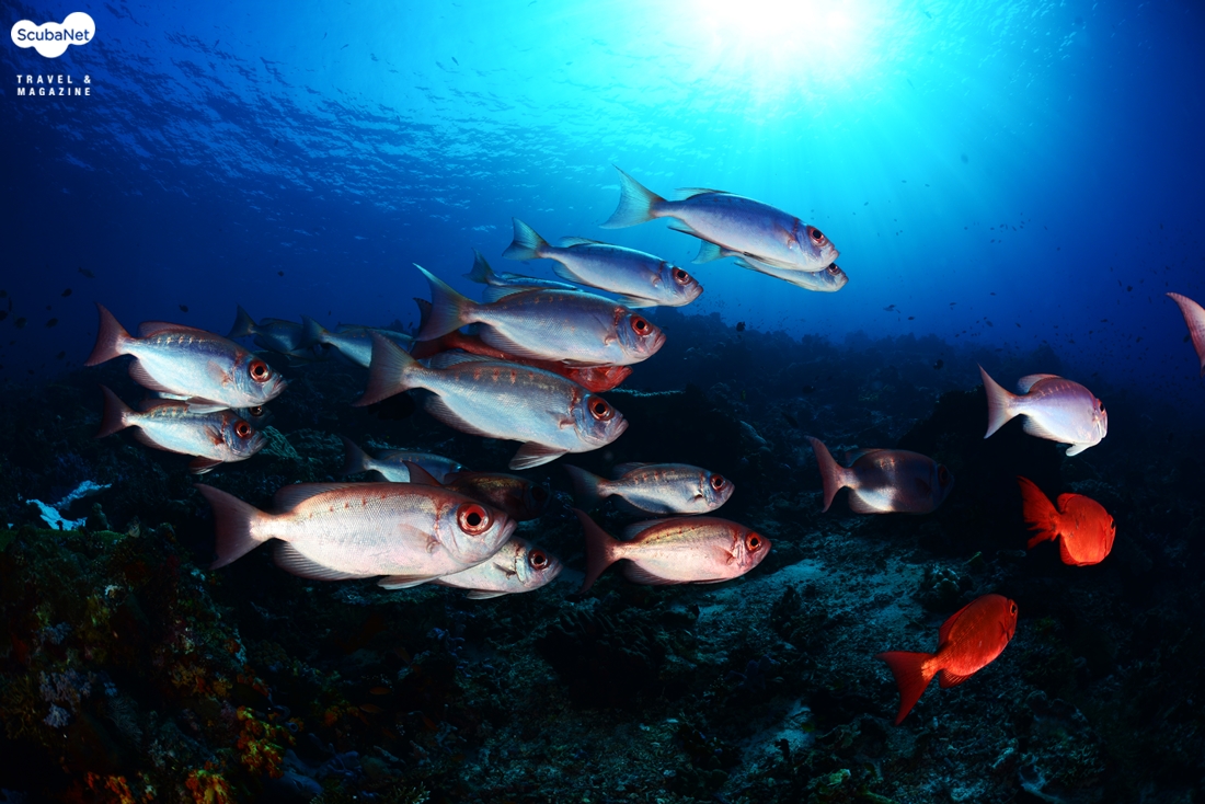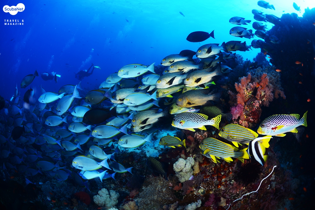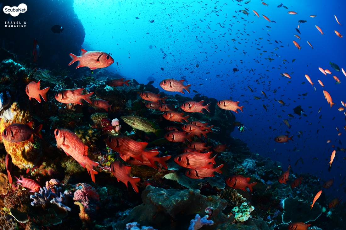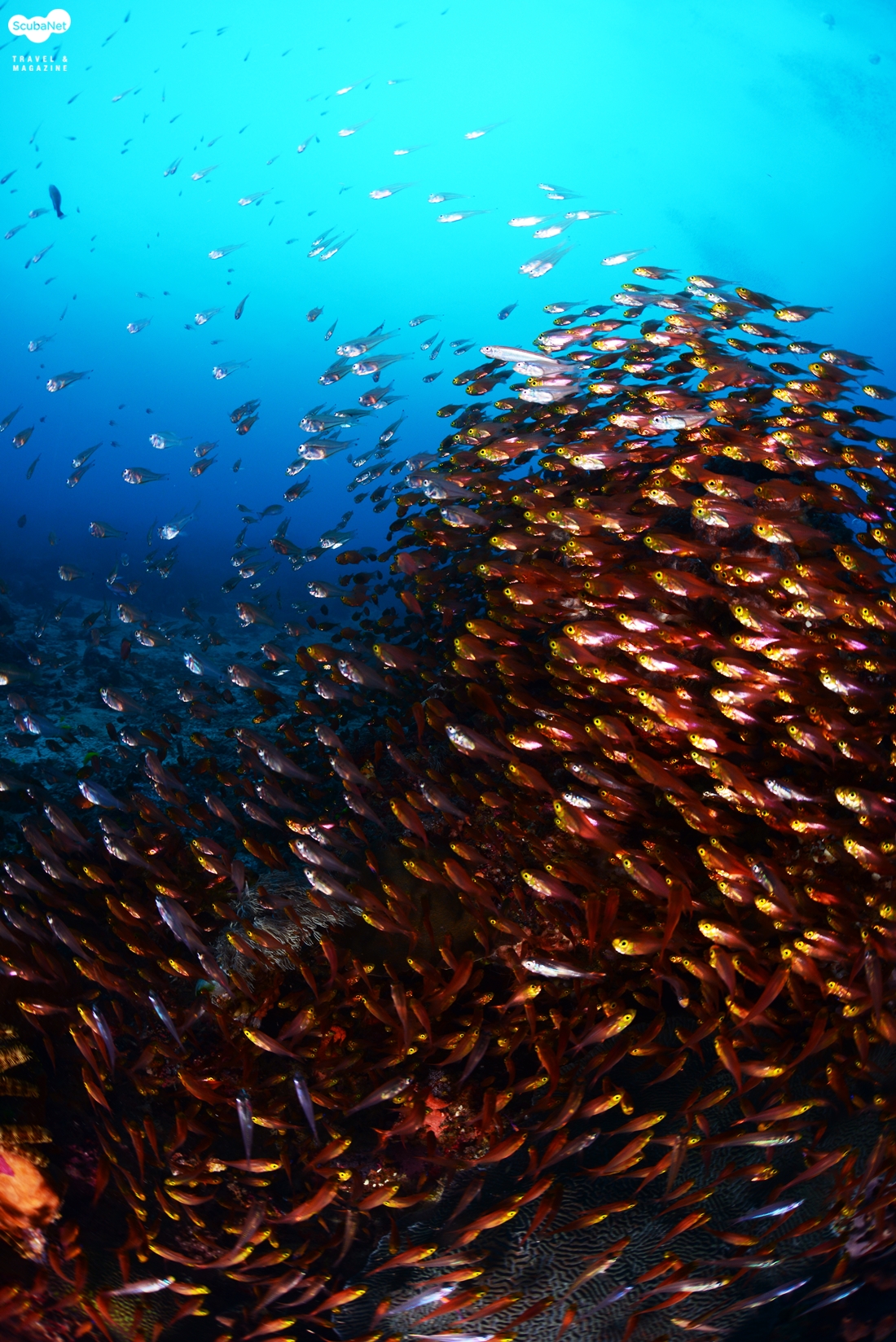 스위트립스 무리화이트팁 상어, 나폴레옹피쉬 등 덩치 큰 녀석들도 먹이를 찾아 어슬렁거린다. 눈 앞을 가로막는 물고기들의 커튼은 다이버들의 혼을 빼놓을 정도이다. 깨끗한 시야에 수족관보다 더 많은 고기들을 볼 수 있다. 조류가 밀려오는 쪽으로 들어가야 물고기들을 볼 수 있다. No Current, No Fish가 실감나는 곳이다.
