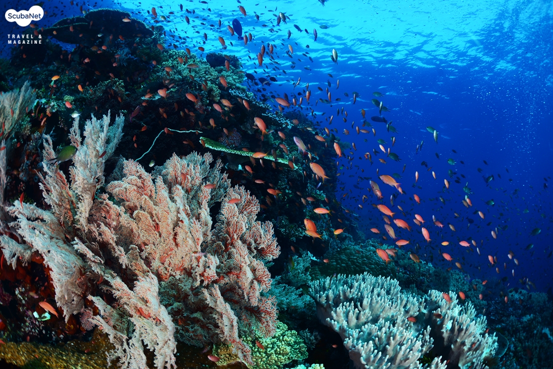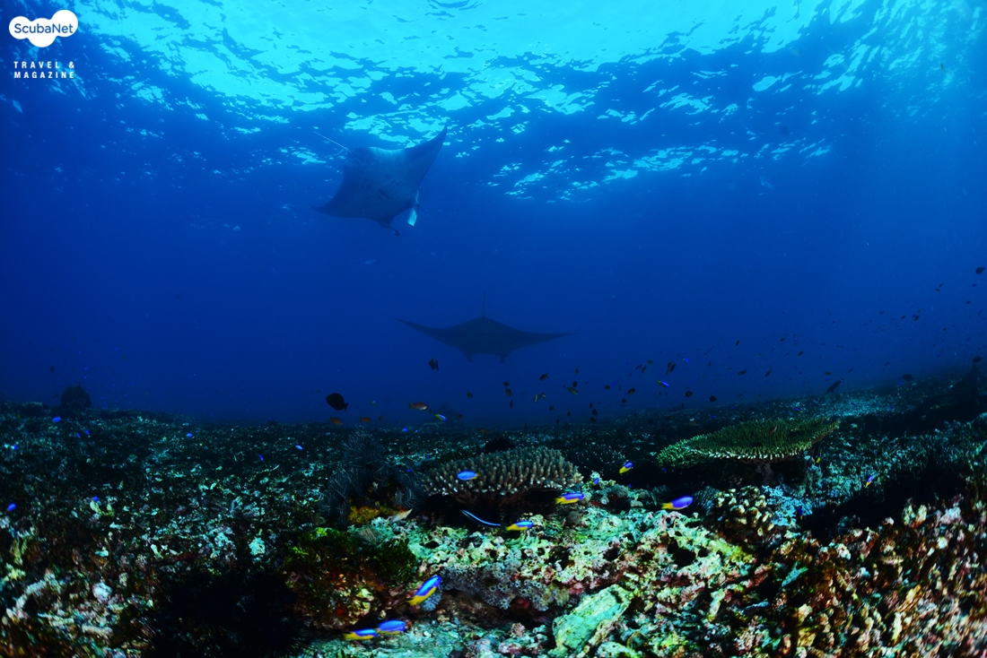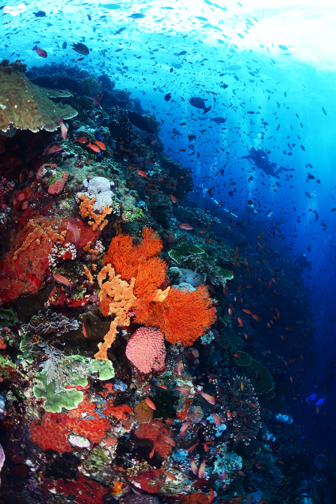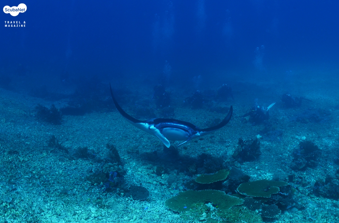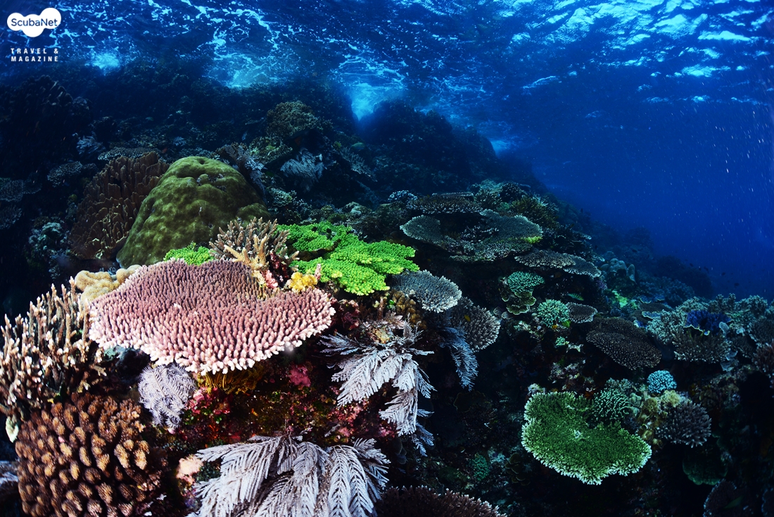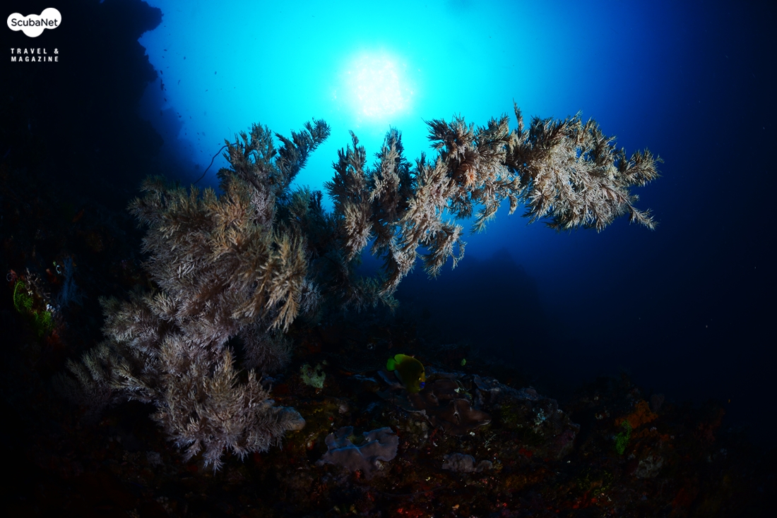 건강한 테이블 산호와 다이버고개를 넘어가는 순간 조류가 강한 수로에 가끔 만타 레이가 하버링을 하고 있다. 메가마우스 상어가 이곳에서 촬영되기도 했다. 조류가 없는 곳에서는 산호들이 잘 발달되어 있고, 다양한 리프 피쉬들을 구경할 수 있다.