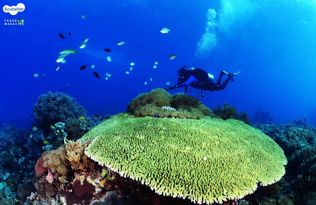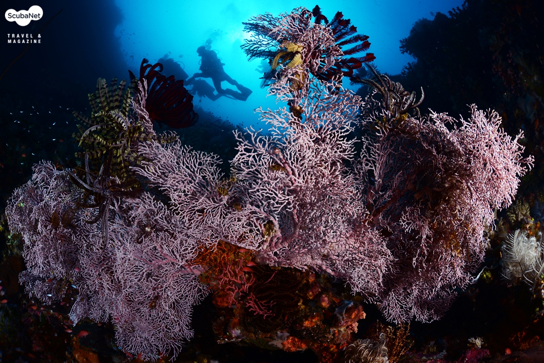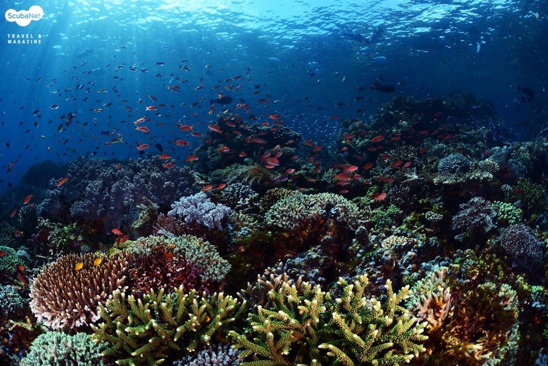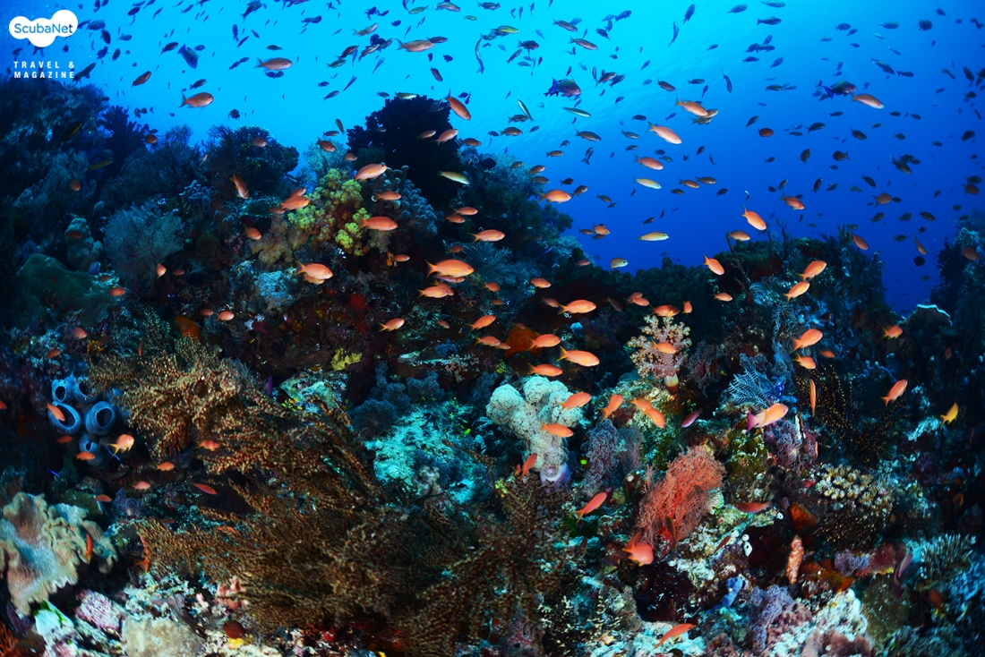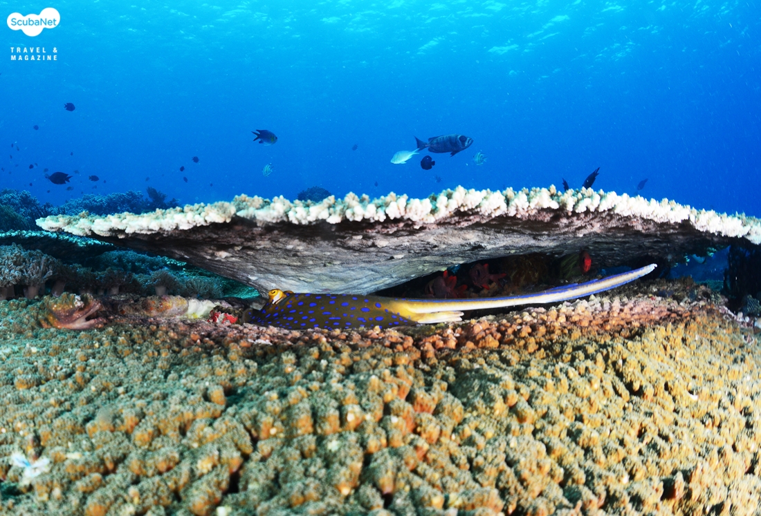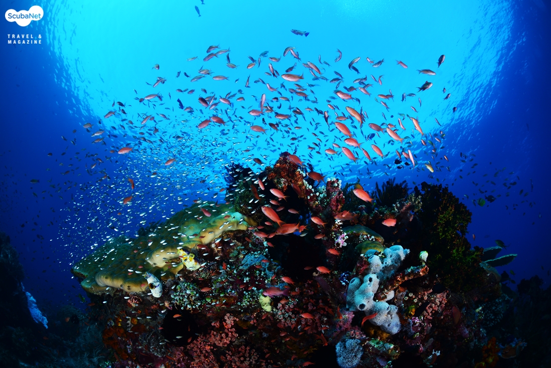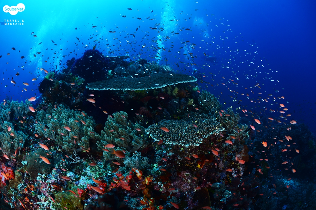 건강한 테이블 산호와 다이버고개를 넘어가는 순간 조류가 강한 수로에 가끔 만타 레이가 하버링을 하고 있다. 메가마우스 상어가 이곳에서 촬영되기도 했다. 조류가 없는 곳에서는 산호들이 잘 발달되어 있고, 다양한 리프 피쉬들을 구경할 수 있다.
