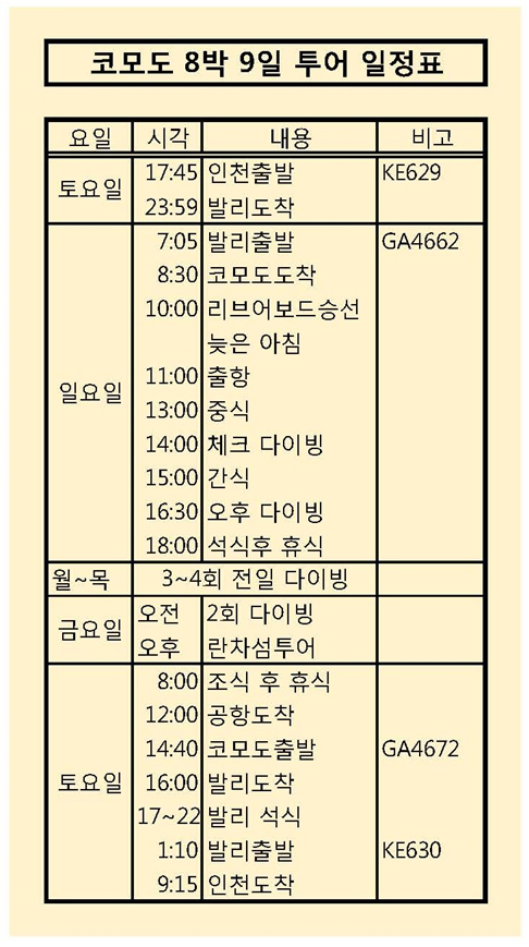 스쿠버넷이 제안하는 8박 9일 샘플 일정표