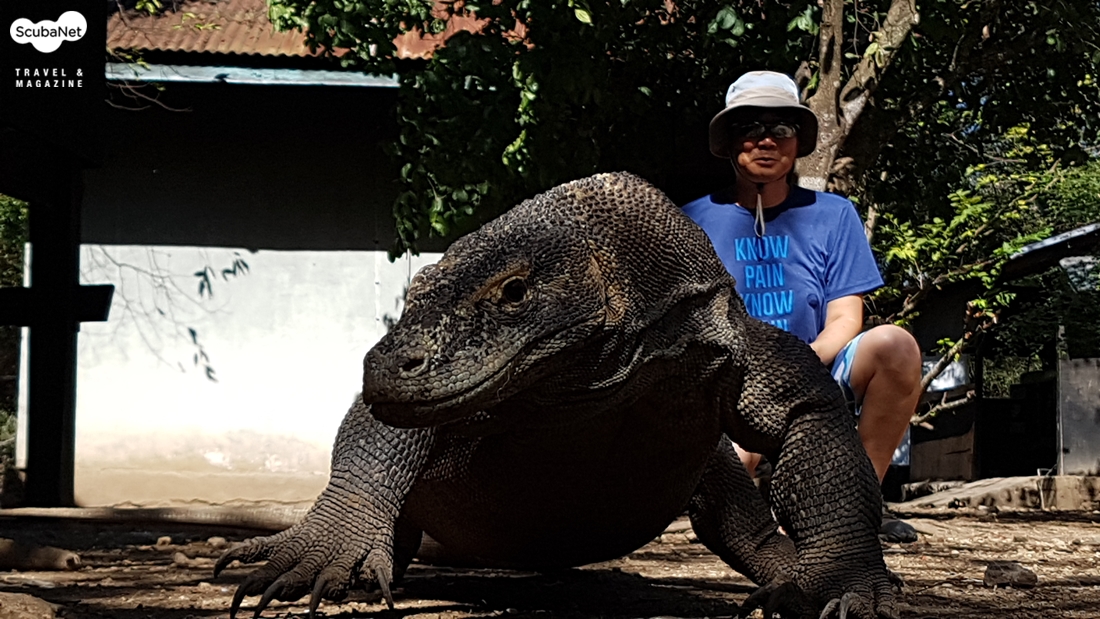 코모도왕도마뱀과 필자실제로 육상 관광으로 린차섬을 찾는 사람들은 선선한 아침 나절에 롱 트렉으로 돌아보며 린차섬의 자연경관도 보고 야생의 도마뱀들도 본다고 한다. 하지만 다이빙을 마치고 뜨거운 한낮에 방문하면 숏트렉을 돌아오는 것만 해도 매우 덥다.