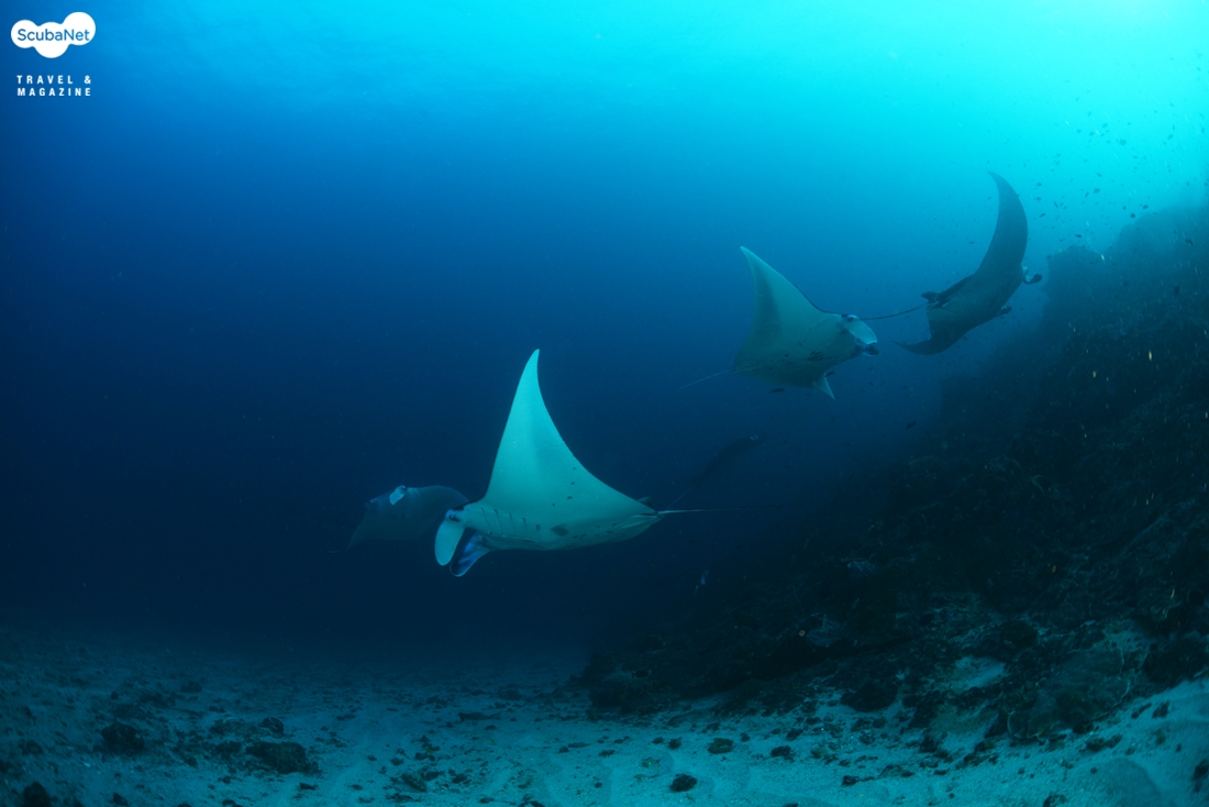 하지만 포인트까지 이동하는데 시간이 걸리기 때문에 작은 다이빙 보트 안에서 예닐곱 시간을 보내야하는 불편함도 있다. 젊고 건강한 다이버들이라면 해볼만 한 선택이다. 이에 비해 리브어보드는 가격은 좀 비싸긴 하지만 넓고 쾌적한 보트에서 생활하며 다이빙 시간에 맞춰서 딩기보트를 타고 5분~10분 거리의 포인트에 입수하면 된다. 거리가 먼 남쪽의 만타 포인트들도 문제없이 다녀올 수 있다.