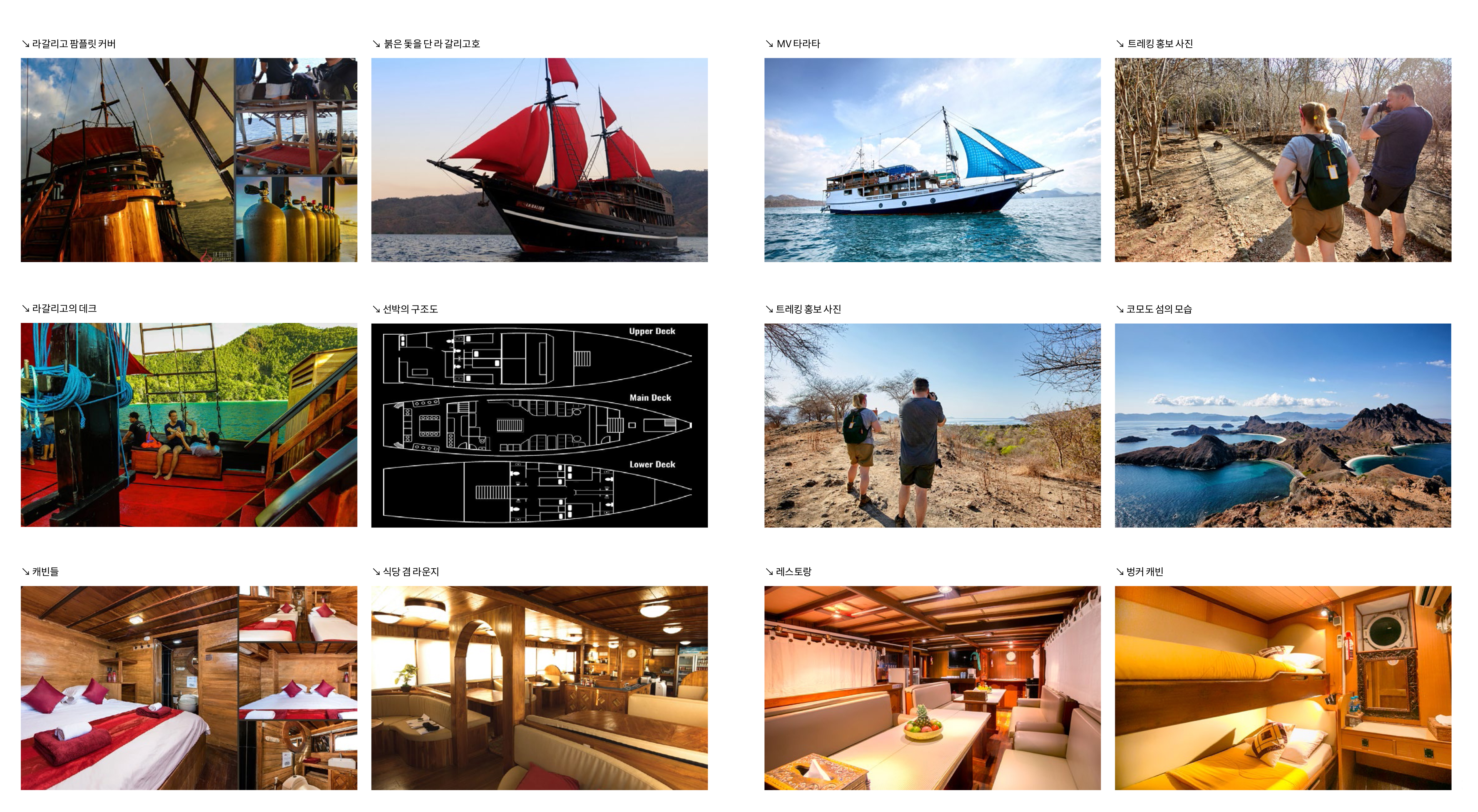 코모도 섬의 멋진 풍경스쿠버넷에서는 주로 리브어보드 보트를 이용하여 투어를 진행하고, 예약을 알선하고 있다. 리브어보드 보트 중에서도 승선인원이 그리 많지 않은 배들을 소개하는데 한팀에서 풀차터를 하기에 적당하기 때문이다. 14인승