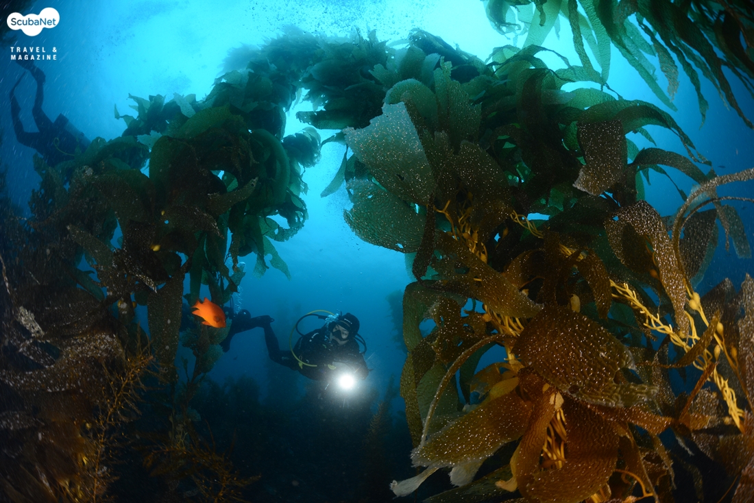 태평양 동쪽 캘리포니아 연안의 캘프 군락 다이빙