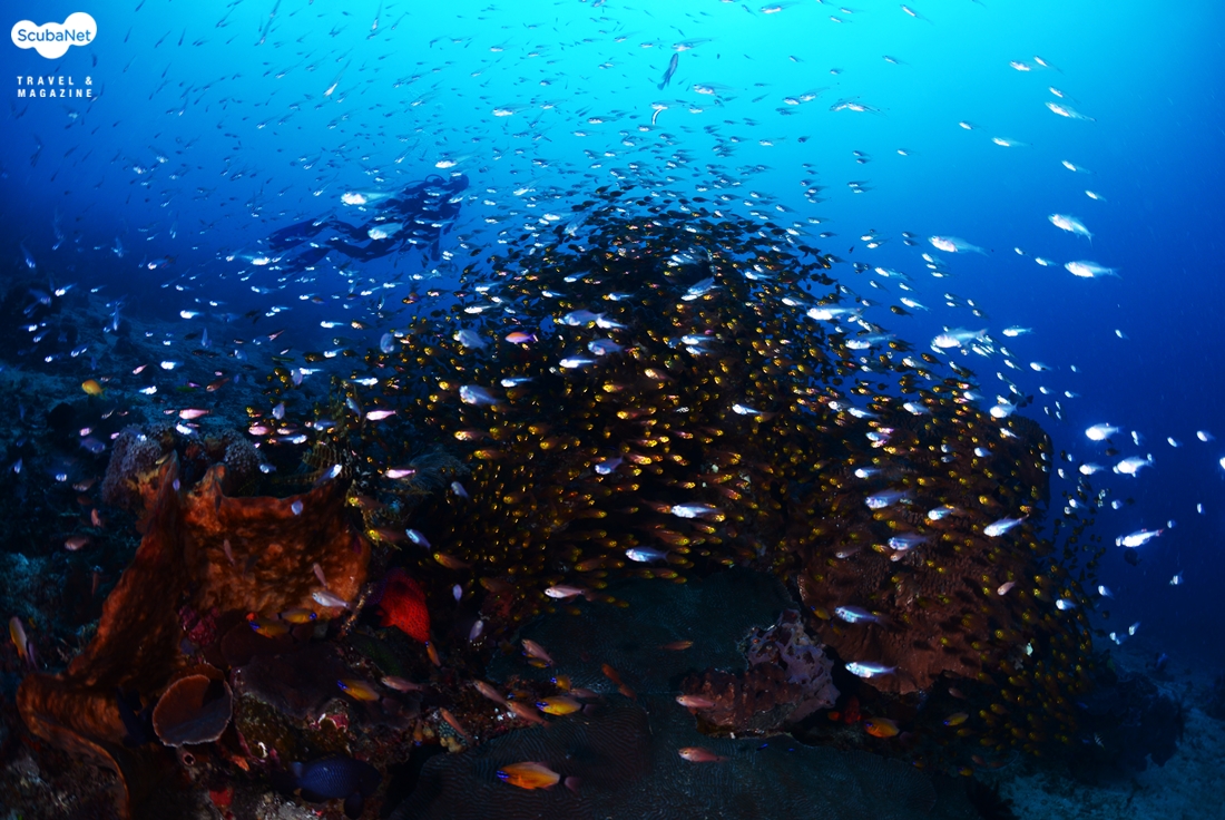 화려한 연산호와 리프 피쉬들어 어우러진 풍경. 투바타하 리프