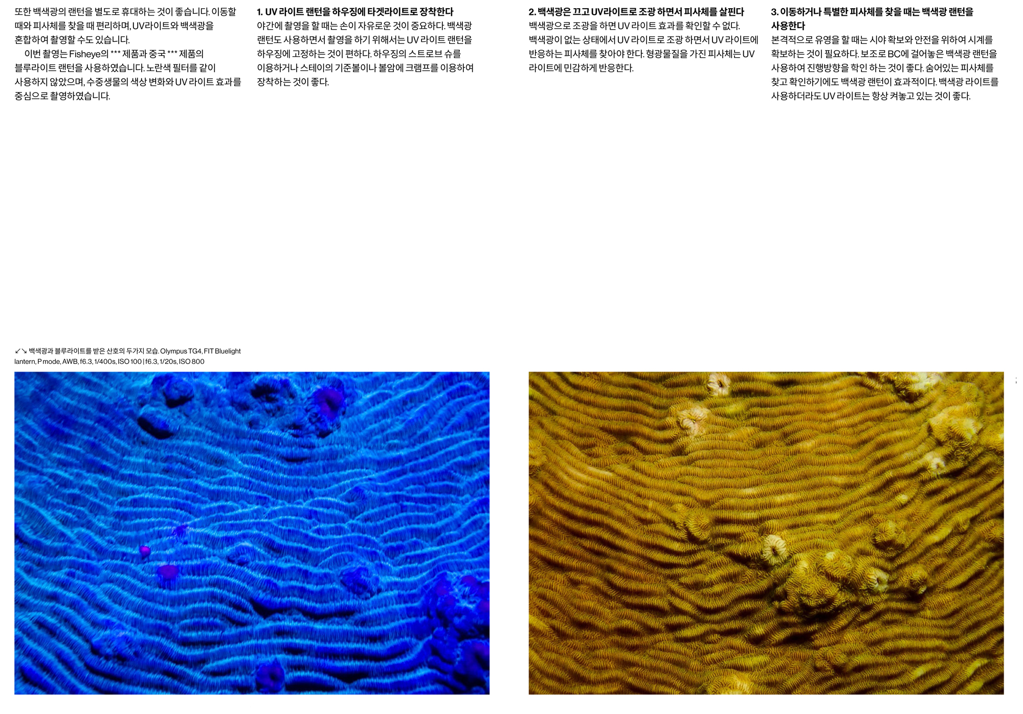 • 이전글 고급수중사진 교실- 링 라이트의 사용- The Use of Ring light 2018/01
