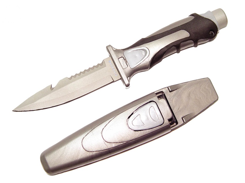 두 번째: 다이빙 벨, 아쿠아 마리카, 쉐이커 등으로 불리며, 금속통 안에 금속 구슬을 넣고 밀봉하여, 흔들면 금속구슬로 인해 소리가 나는 장비이다. 이것은 탐침봉과 결합된 제품도 출시되고 있다. 그 외 원형의 고무줄 사이에 플라스틱 볼을 장착한 제품을 실린더 외부에 끼운 상태에서 소리를 내야 할 경우에는 플라스틱 볼을 당기면 그 볼이 실린더에 부딪혀서 소리가 나게 된다. 또 다이빙 나이프의 끝부분에 금속 탭을 해 놓은 제품이 많이 있는데, 이 탭으로 실린더나 기타 소리가 날 수 있는 부분을 쳐서 소리를 내기도 한다.