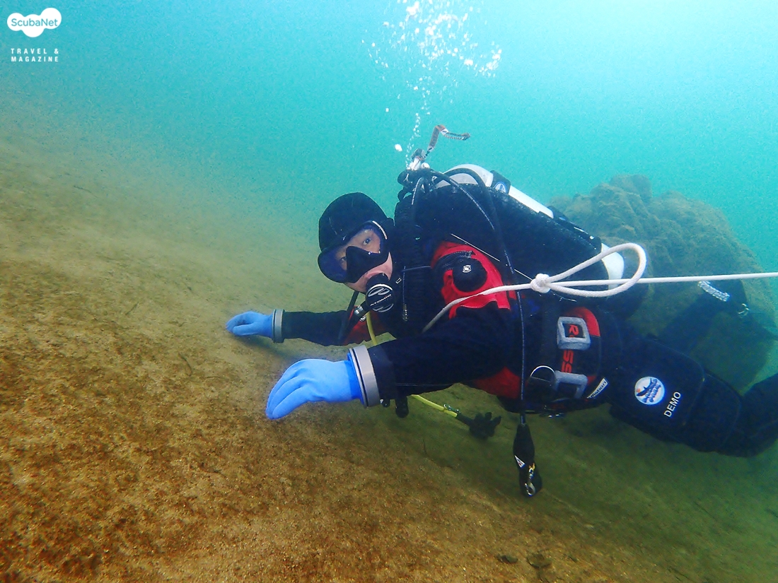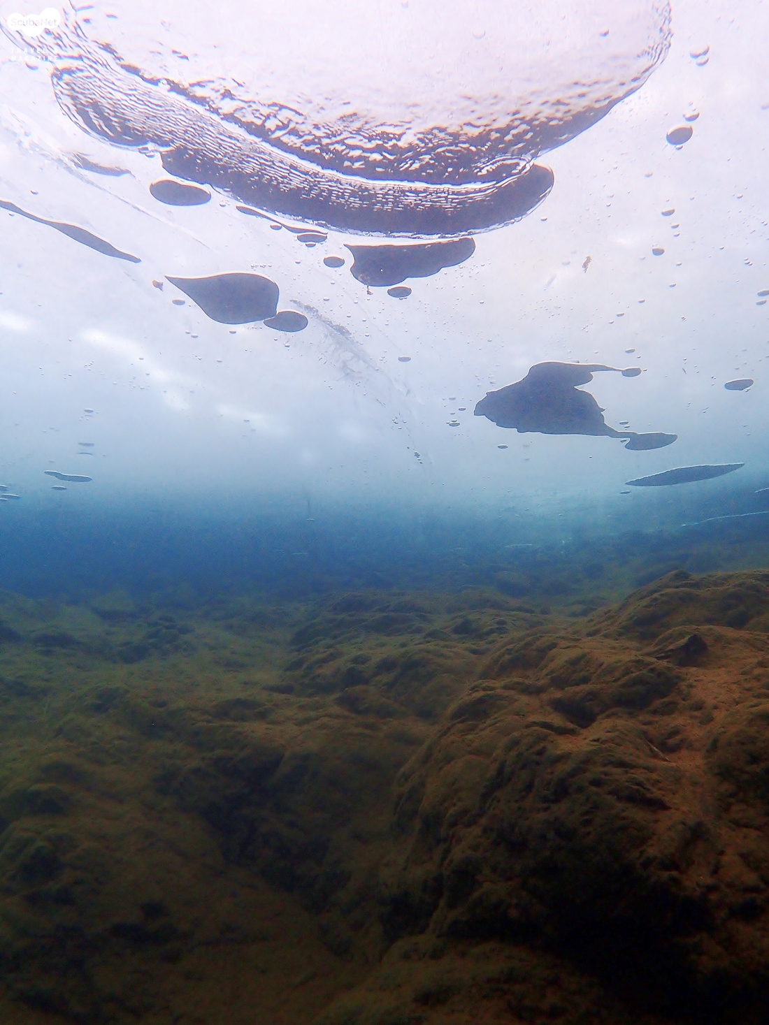 오후에 한번의 다이빙을 더 준비했다. 호흡기는 사용 전에 뜨거운 물속에 담아 두어서 결빙을 방지 하였다. 첫 다이빙 보다 좀 더 먼 거리를 이동 할 수 있었다. 아이스다이빙은 안전 줄을 꼭 매고 들어 가는 특수한 다이빙이다. 다이빙을 마치고 출구를 못 찾으면 상당히 위험하기 때문에 반드시 줄을 이용해서 육상 텐더와 줄 신호를 주고 받는다. 좀 더 멀리 가니 시야가 오전 보다 좋다. 마치 우주에 있는 화성의 일부 공간을 보는 듯하다. 바닥은 부유물이 가라 앉아 있어서 잘못 오리발을 차면 시야가 금방 안 좋아 진다. 안전 줄이 사진을 찍는데 방해가 되기도 했다. 그래도 어쩔 수 없이 몇 장의 사진을 찍고 돌아 다녀 본다. 치어 무리가 떼를 지어 있어서 다가가니 순식간에 도망을 친다. 내가 내 뱉은 공기 방울이 얼음 아래에서 퍼져 나간다. 일부는 방울이 맺혀서 영롱한 모습으로 흩어져 자아낸다. 옆에서 다이빙을 하는 다이버들을 만났다.