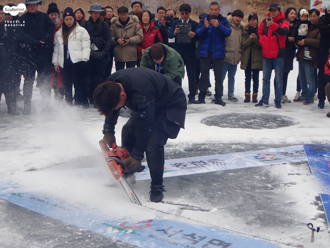 어느덧 올해로 5회를 맞이한 '한국 아이스다이빙 페스티벌'이 1월 20일 강원도 홍천 서석면에서 진행이 되었다. 나는 작년에 참가하고 올해로 2번째 참석이었다. 행사의 규모는 매년 커지고 있었는데 아이스다이빙을 하고 싶은 전국의 많은 다이버들이 부담 없이 축제를 즐길 수 있게 기획을 한 사람은 '차순철' 강사였다. 홍천이 고향인 그는 그 동안 이 행사를 지속적으로 개최하기 위해 많은 노력을 해왔는데 어느새 5년째를 맞이했다. 행사에는 여러 방송사에서도 취재를 왔는데 이날 아이스다이빙을 하는 모습은 YTN 뉴스에서도 방송이 되었다. 많은 경품이 준비 된 행사는 차가운 날씨 속에 그 동안의 경험을 통해서 원만하게 진행이 되었다.