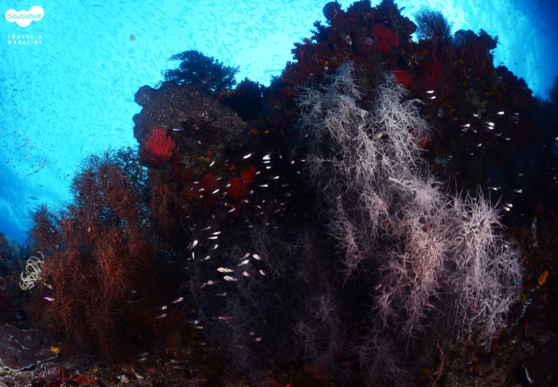 고래를 닮았다는 웨일락에서 다이빙을 했을 때는 조류가 없는 정조였다. 연산호와 부채산호가 어우러져서 가장 아름답다는 계곡사이의 작은 피너클에 도착했을 때 적막한 수중은 실망스러울 정도였다. 연산호들은 폴립을 감춘채 쪼그라들어 있었고, 물고기들도 흔적을 찾을 수 없었기 때문이다. 말 그대로 조류가 없으면 물고기도 없었다. 그럼에도 불구하고 전체적인 지형과 부채산호들은 매우 웅장하고 멋졌는데 조류가 있었다면 어땠을까 하는 생각이 들었다. 다음에 기회가 된다면 조류가 좋을 때 꼭 다시 오고 싶은 곳이었다.