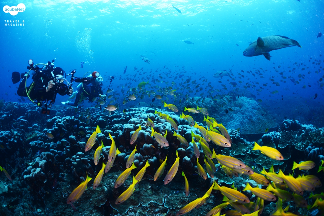 매직마운틴은 아침 일찍 서둘러 들어갔다. 사실 미술의 유명한 포인트에서 다이빙하기 위해서 많은 리브어보드들이 몰리기 때문에 미술에코리조트에서는 리브어보드들의 다이빙스케줄을 취합하여 서로 겹치지 않도록 조정을 해주고 있다고 했다. 다이버들은 물론 포인트의 생물들에게도 영향을 덜 미칠 수 있는 방식이었다. 아무튼 매직마운틴은 만타 클리닝 스테이션으로 잘 알려져 있는데 수심 5m의 수중 봉우리 상단은 물론이고 수심 20m의 남쪽 능선 끝에서도 만타를 볼 확률이 많은 곳이다. 그래서 처음 입수하여서는 봉우리 쪽을 잠깐 살펴보다가 바로 남쪽 능선을 따라 이동하였다.