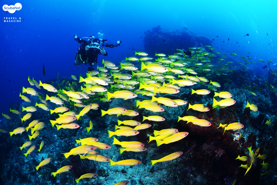 로미오락에서는 늦은 오후 다이빙을 진행했다. 야간 다이빙에서 흥미로운 것을 찾지 못했기에 네번째 다이빙을 야간 다이빙 대신 좀 일찍 데이 다이빙으로 진행하자고 했던 것이다. 깊은 수심에서는 무리지어 몰려다니는 옐로우테일 푸질리어들을 한참 쫓아다녔고, 얕은 수심에서는 먹이활동을 하는 제비활치무리들을 따라 다니며 시간을 보냈다. 또한 섬 근처 얕은 곳에 모여있는 멸치들을 사냥하는 자이언트 트레발리들과 이들을 피해 이리저리 달아나는 멸치들의 군무를 감상할 수 있었다.