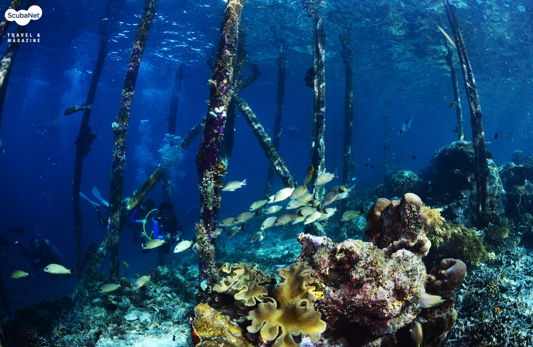 옌부바에서는 라자암팟의 전형적인 글라스피쉬 무리들이 감싸고 있는 산호군락을 만날 수 있었다. 또한 옌부바 빌리지의 젯티는 구조물을 활용한 수중촬영의 소재로 좋았다. 오후라 수면을 뚫고 들어오는 빛도 좋았다. 작품을 만들고자 하는 작가들에게는 멋진 곳이었을 것이다.