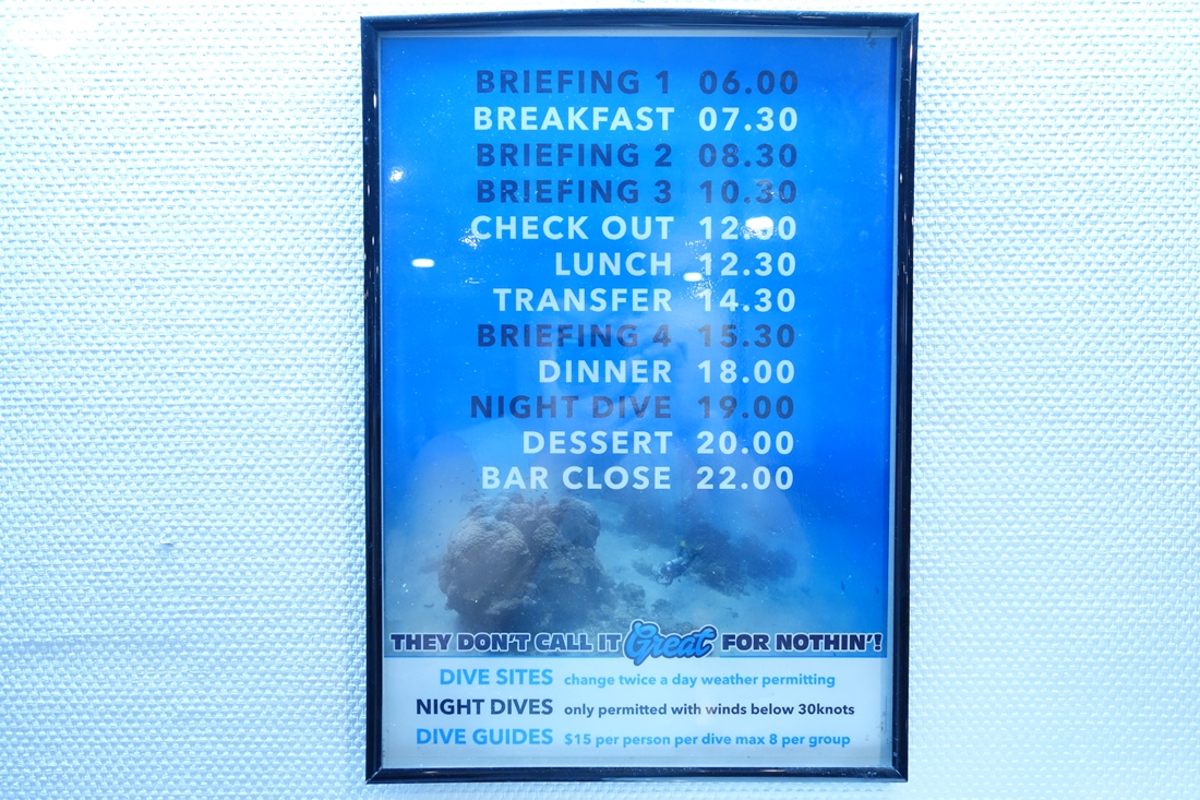 여러 리브어보드에는 타임테이블이 있는데 이곳의 시간표는 아래 참조바랍니다.
