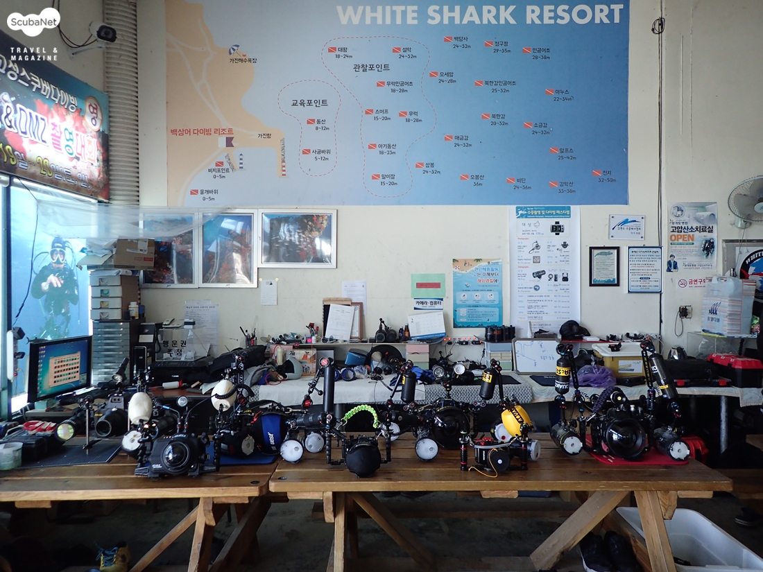 지난 1월에 강원고 고상의 백상어리조트에서 진행된 '참복' 박정권 님의 수중 사진 세미나를 다녀 왔다. 아직까지 카메라로 무엇을 담아야 잘 표현을 한 것인지, 스트로브는 어떻게 사용해야 멋진 사진을 얻을 수 있는지 궁금한 게 많은 나였기에 참복님의 수중사진 세미나 소식을 듣자마자 바로 접수를 하고 세미나 날짜만 기다렸다. 그렇게 한 달을 기다리고 세미나 당일 날 스쿠버 장비에 카메라 장비까지 챙겨서 이른 아침에 동서울 버스터미널로 가서 버스를 타고 출발했다. 서울에서 약 2시간 반 만에 간성 버스터미널에 도착하니 백상어리조트 사장님이 마중을 나와 주셨다.