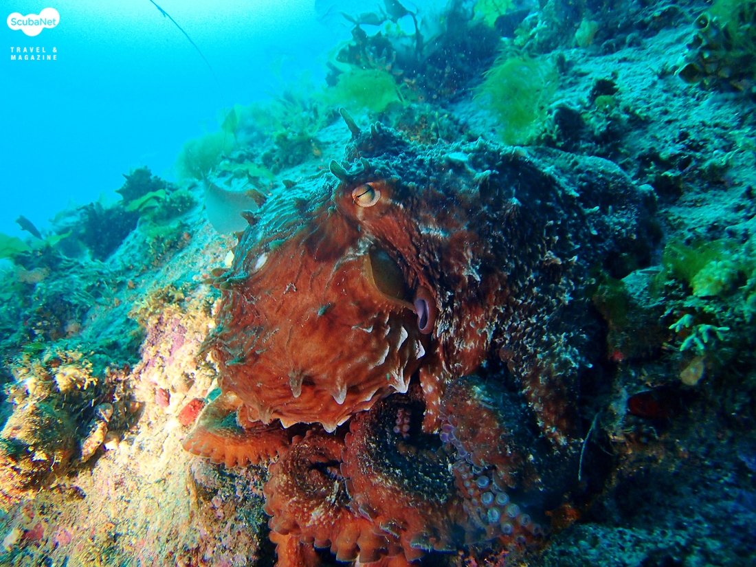문어 - 스트로브가 작동을 안해서 지속광으만 찍어 보았다 리조트에 돌아 와서 길지 않은 수면 휴식 시간을 갖고 다시 한번 다이빙을 하기로 했다. 이번에는 백상어리조트 사장님한테 광케이블을 빌려서 다이빙을 가기로 했다. 두 번째 다이빙도 첫 다이빙으로 들어간 곳에 다시 가기로 했다. 문어를 봤다고 하니까 참복님도 이번에는 같이 들어가서 사진을 어떻게 찍고 있는지 봐 준다고 했다. 들어 가자 마자 말미잘을 중심으로 여러 장의 사진을 찍었다. 스트로브가 이번에는 이상 없이 제대로 작동을 한다. 첫 다이빙 보다 사진 찍는 재미가 배가 됐다. 내가 찍고 싶은 대로 사진을 찍고, 하강 줄로 돌아오니 아까 본 문어를 다른 다이버들이 찍고 있다. 참복님도 문어 사진을 같이 찍고 있었다. 첫 다이빙 때 재대로 못 찍은 문어 사진을 나도 덩달아 찍어 보았다. 두 번째 다이빙도 약 40분 정도 하고 출수를 했다.
