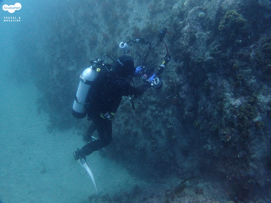 세미나를 진행 해 주신 참복님과 함께 세미나는 다이빙을 하고 나서 사진을 어떻게 찍었는지 직접 피드백을 해 주고, 사진의 구도, 노출, 조리개 등등에 대한 다양한 주제들을 다룬다고 했다. 백상어 리조트에 도착하자 마자 장비를 챙겨서 다이빙을 먼저 나갔다. 첫 다이빙은 말미잘이 군락을 이룬 곳으로 들어 갔다. 사진을 찍으려고 하니 스트로브가 됐다 안됐다 말썽을 부린다. 전에도 한번 그랬는데 물속에서 작동을 안 하니 정말 난감하다. 사진을 찍어서 어떻게 찍었는지 결과물을 보여 주어야 하는데 말이다. 스트로브 때문에 스트레스 받고 있었는데 얼마나 시간이 흘렀는지 모를 정도로 신경을 쓰다 보니 손끝이 시려 왔다. 그도 그럴 것이 수온이 4℃였다. 한 곳에서 사진을 찍는다고 많이 움직이지도 않아서 더 추위를 느끼는 기분이었다. 약 40분 정도로 첫 다이빙을 마치려 출수를 하려는데 문어가 한 마리 보인다. 추워서 출수를 하고 싶었지만 사진에 대한 욕심이 생겨서 문어 사진을 몇 장 더 찍고 상승을 했다.