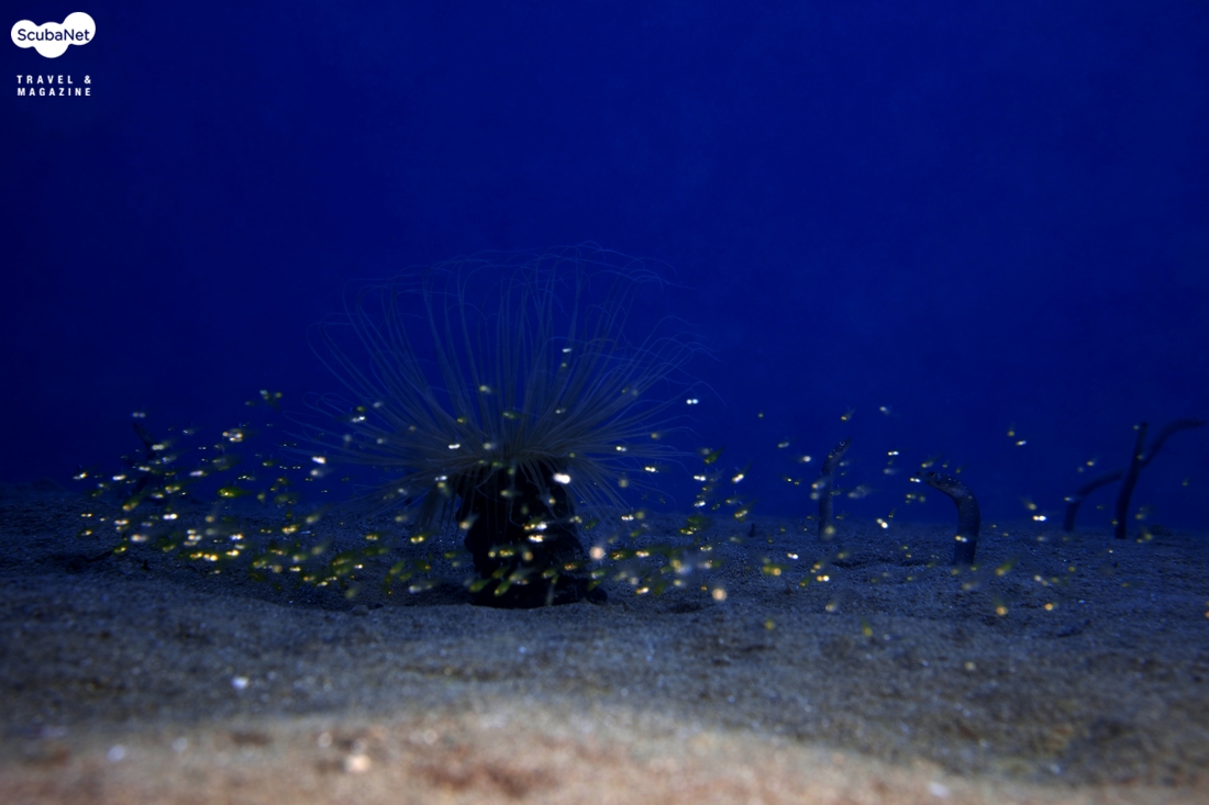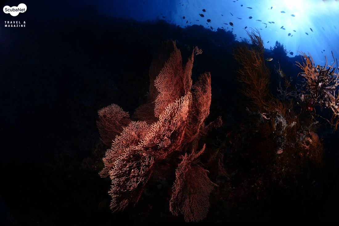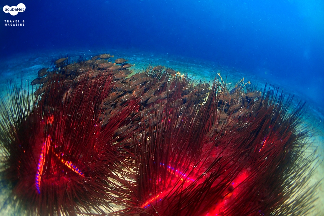 여러 개의 성게 군집과 물고기 군집에 의해 입체감은 높인다.