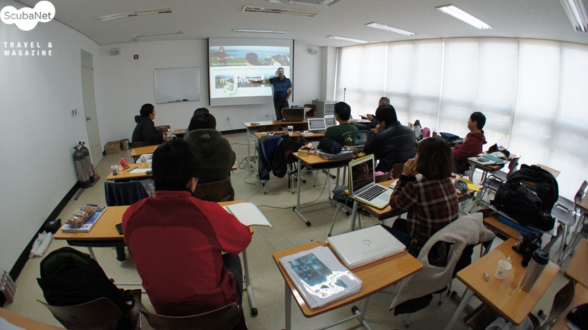 처음 GUE를 접한 건 강사 동기 분들을 통해서였다. 몇 년 동안의 강사 활동에 매너리즘에 빠져있던 나에게 GUE 다이빙에 대한 그들의 이야기는 신선하고 흥미로웠다. GUE의 기존의 교육들과는 다른 교육 시스템과 다이빙 기술들 그리고 GUE 다이버들이 플로리다의 동굴을 어떻게 탐사했는지, 또 120m 수심의 배를 어떻게 찾아냈는지에 대한 내용 등이었다. 그러던 중 다이빙 잡지에서 동굴 다이빙에 대한 기사를 보게 되었고 동굴의 환상적인 모습은 진한 감동으로 남아 머릿속에서 잊혀지지 않았다. 그렇게 해서 2009년 펀드멘털(Fundamental) 과정을 통해 GUE로 크로스 오버 후 Technical 1 레벨 과정으로 테크니컬 다이빙에 입문하게 되었고, 그 후 멕시코 동굴을 찾아가 Cave 1 레벨을 거쳐 작년엔 한국 최초의 Cave 2 레벨 다이버가 되었다. GUE는 글로벌 언더워터 익스플로러(Global Underwater Explorer)의 약자로 우드빌 카르스트 플레인 프로젝트(Woodville Karst Plain Project; WKPP)로도 잘 알려진 미국 플로리다의 와쿨라 스프링(Wakulla Springs)을 탐사하면서 만들어진 단체이다. GUE 다이버 프로그램은 WKPP 다이빙 운영의 한 부분으로 발전된 것이다. GUE는 교육(Education), 탐험(Explorer), 보호(Conservation)를 모토로 수중 세계를 안전하게 탐사하며, 보호하고, 수중과 관련된 모든 것들에 대한 교육과 연구의 질을 향상시키는데 중점을 두고 있다. 또한, 전 세계적인 네트워크를 통해 수중 탐험가들, 자연 보호론자들 그리고 과학자들간의 정보 교류를 증진하며, 발전 할 수 있도록 노력하고 있다.3년여 동안 GUE 활동을 하다 보니, GUE를 더 많은 사람들에게 알려 주고 싶어지게 되고, 다이빙 기술들이나 지식을 더 쉽게 사람들에게 전해주고 싶은 마음이 생겼다. 그런 중 때마침 올 3월 한국에서 GUE 레크리에이셔널(Recreational) ITC를 개최하게 되어 고심 할 새도 없이 참가하게 되었다. GUE 레크리에이셔널 ITC는 레크리에이셔널 레벌 1 강사와 펀드멘털 강사를 배출하는 강사 교육 과정이다. 레크리에이셔널 레벨 1 과정은 처음 다이빙을 시작하는 사람들에게 적합한 것으로 나이트록스 다이빙 과정이라고도 한다. 펀드멘털 과정은 크로스 오버의 개념으로 타 단체의 다이버가 GUE 다이버로써 인증 받는 과정이다. 강사 과정은 6일간의 ITC와 2일간의 IE 과정을 포함하여 총 8일간 진행되고, 이 기간 동안 GUE 강사가 되기 위한 2개의 사인 중 하나를 얻을 수 있다. 그러나, 이 기간 중에 사인을 하나 받는 것은 10~20% 미만으로 아주 어려운 일이라고 한다. 그렇기 때문에 이 기간 중 사인을 하나 얻게 되면 인턴쉽 없이 바로 IE를 신청할 수 있는 자격이 주어진다. 그 후 일련의 인턴쉽 과정을 거쳐 IE를 통해 평가관으로부터 두 번째 사인을 받게 되면 최종적으로 GUE 강사가 된다. 이런 부분들 때문에 GUE가 강사가 되는 것이 어렵다고 하는 것 같다.2010년 제주에서의 ITC에 이어 한국에서 열린 두 번째의 이번 ITC는 울진해양레포츠센터에서 3월 17일부터 24일까지 진행되었다. 참가인원은 한국에서 활동하는 GUE 다이버들의 모임인 KUE에서 6명과 일본의 JUE에서 1명으로 총 7명의 강사 후보자, 트레이너 1명, 평가관 1명, 통역 및 스텝 등이 참가했다. KUE는 한국에서 열리는 모든 GUE 과정들을 운영하고, 과정 진행 시 교육생들에게 여러 가지 지원을 해주고 있다. 이번 ITC도 여러분들의 도움으로 무사히 치뤄질 수 있었음에 이 자리를 빌려 감사드리고 싶다.교육 기간 동안은 처절하리만큼 나 자신을 돌아 볼 수 있는 시간이었다. 나름 한국에서 다이빙도 자주 했었고, 캐이브 2 과정도 한번에 합격했기 때문에 그 어느 때보다 자신만만했던 나였는데, 강사는 잘하는 정도가 아닌 모든 기술을 정확하고 완벽하게 시현할 수 있어야 했으며, 이론 지식도 각 단원의 주제뿐만 아니라 그 주제에 대한 배경지식도 함께 갖추고 있어야 했다. 결론적으로 말하자면 모든 면에서 완벽함이 요구되었다. 50cm까지도 어긋남이 없는 부력 조절 능력과 완전한 0°의 트림자세, 규정에 따른 정확한 기술 전개 등 어느 하나 소홀할 수가 없었다. 특히나 일본인 후보생과 함께 진행하다 보니 모든 강의 진행도 영어로 발표해야 했기에 부담은 더욱 가중되었다. 그렇지만, 8일간의 ITC 과정을 거치고 보니 그 동안의 막연했던 부분들이 명쾌해진 것 같다. 내가 해야 할 것들과 그것을 위해 준비해야 하는 것들이 무엇인지, 내가 부족한 부분과 잘하는 부분이 무엇인지. 남은 IE를 눈앞에 두고, 강사가 되기 위한 사전 준비와 그 후의 활동에 부담감과 책임감을 함께 느끼는 건 사실이지만, 그만큼 준비되었기에 잘 할 수 있을 거란 자신도 생긴다. 이것이 GUE ITC를 통해 얻은 값진 선물인 것이다. 앞으로 많은 사람들이 GUE를 부담이나 거리감 없이 접할 수 있도록 많은 노력을 할 것이다. 이 글을 읽은 분들에게도 나와 같은 영감이 생겼으면 좋겠다.